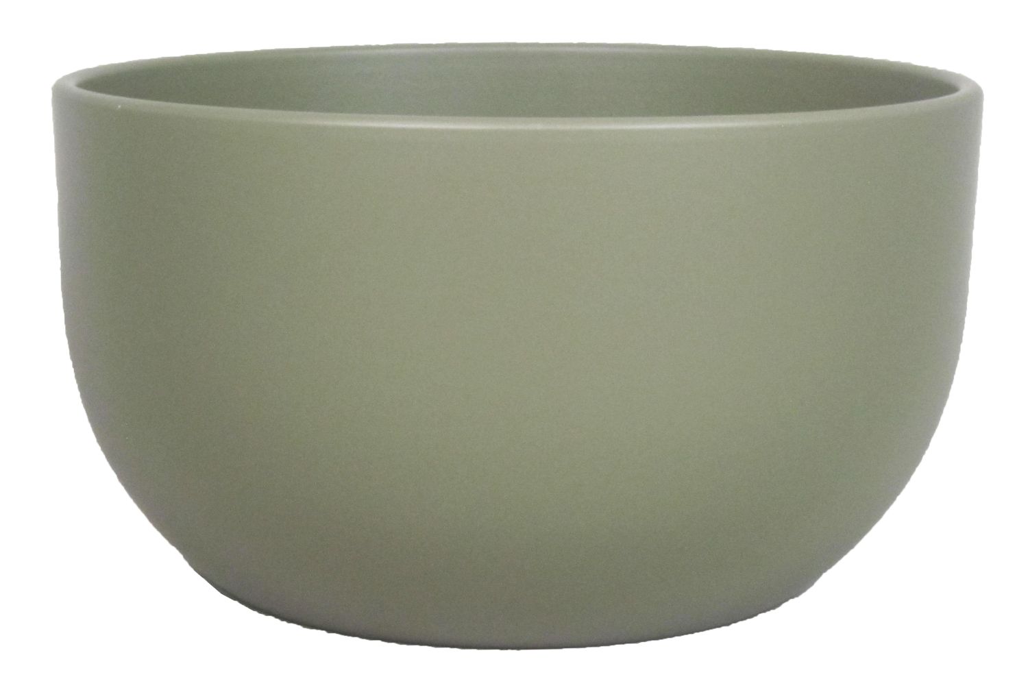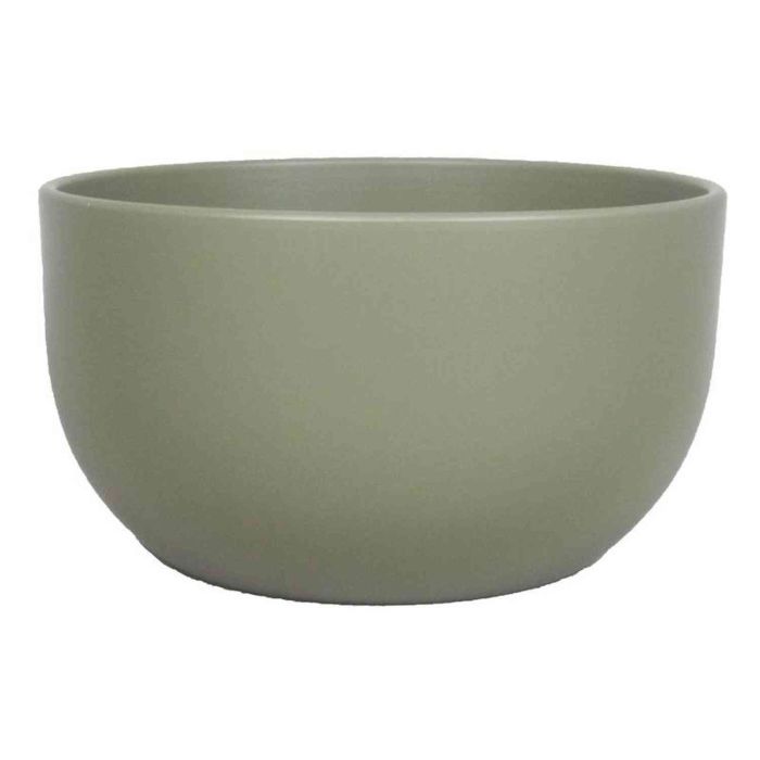 Plant bowl TEHERAN TOWER made of ceramic in olive green colour with a diameter of approx. 10"/26 cm and a height of approx. 5.5"/14 cm.