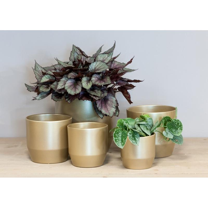 Ceramic flower pot LENAS, pearl gold matt, 7"/18,5 cm, Ø8"/19,5cm