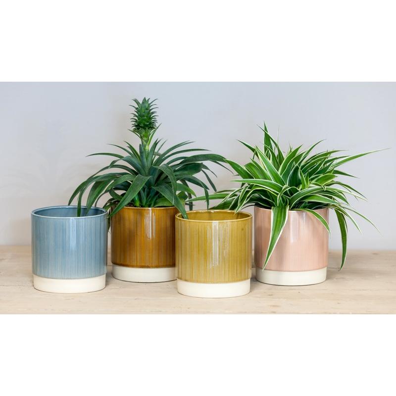 The ceramic plant pot THELON will impress with a glazed surface and vertical lines that give it a radiant look.