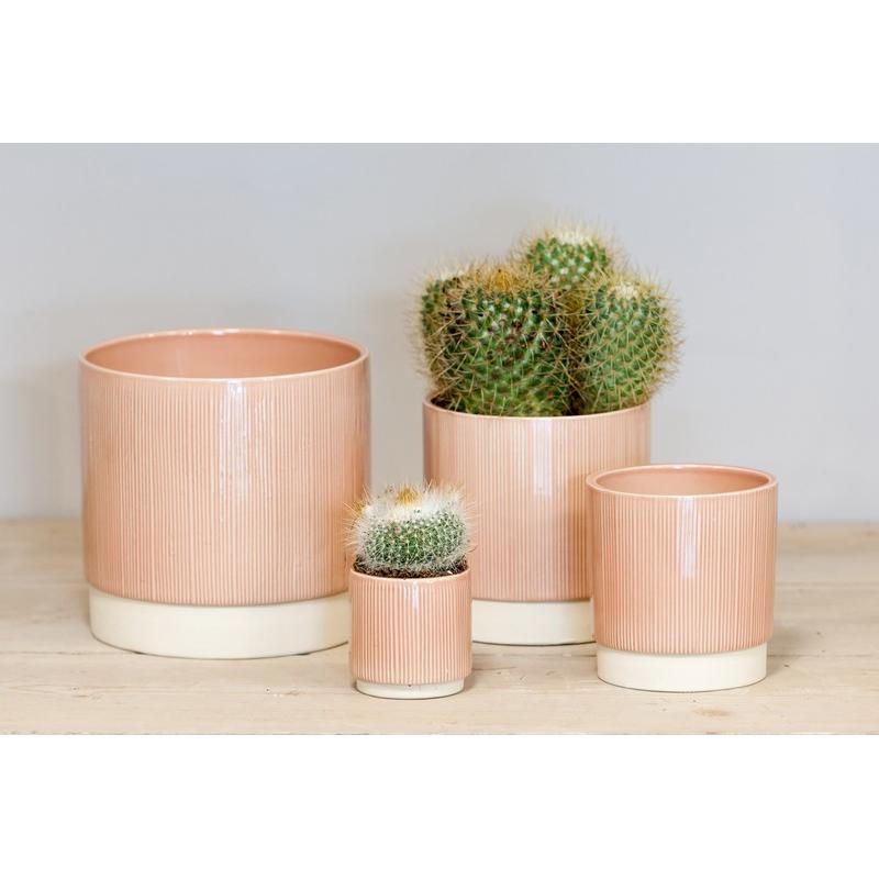 Ceramic flower pot THELON, light pink-white, 6"/16cm, Ø6"/16cm