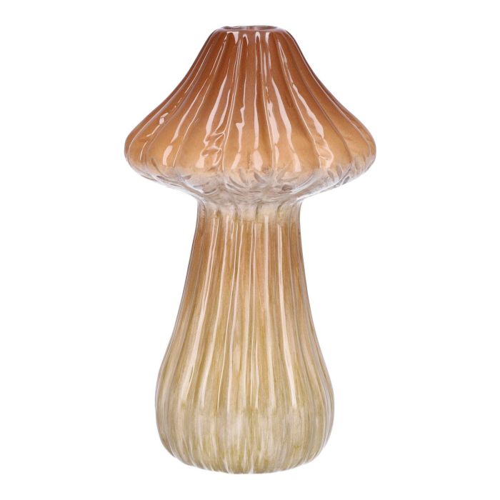 Ceramic flower vase RATBURGA, mushroom shape, grooves, brown-beige, 16cm, Ø9cm