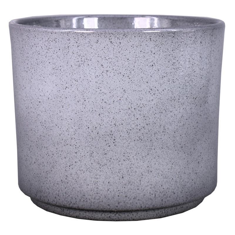 The plant pot BELUNA made of ceramic is characterised by its cylindrical shape with a speckled pattern.