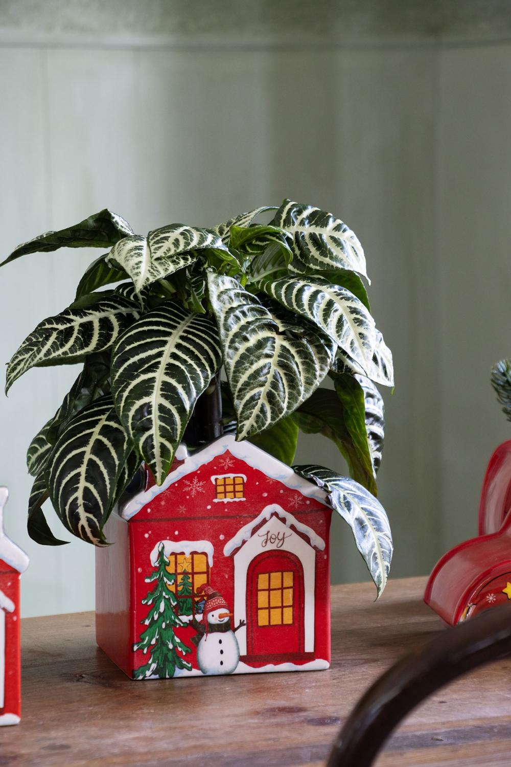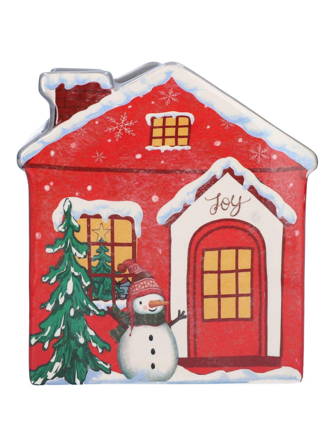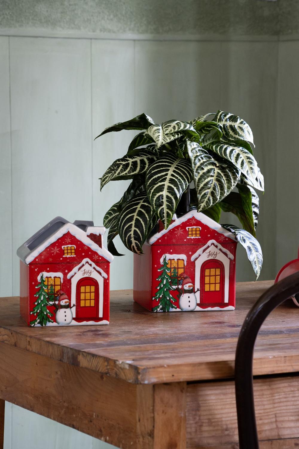 Christmas house ceramic pot ARMAS, red-white, 13x13x15cm