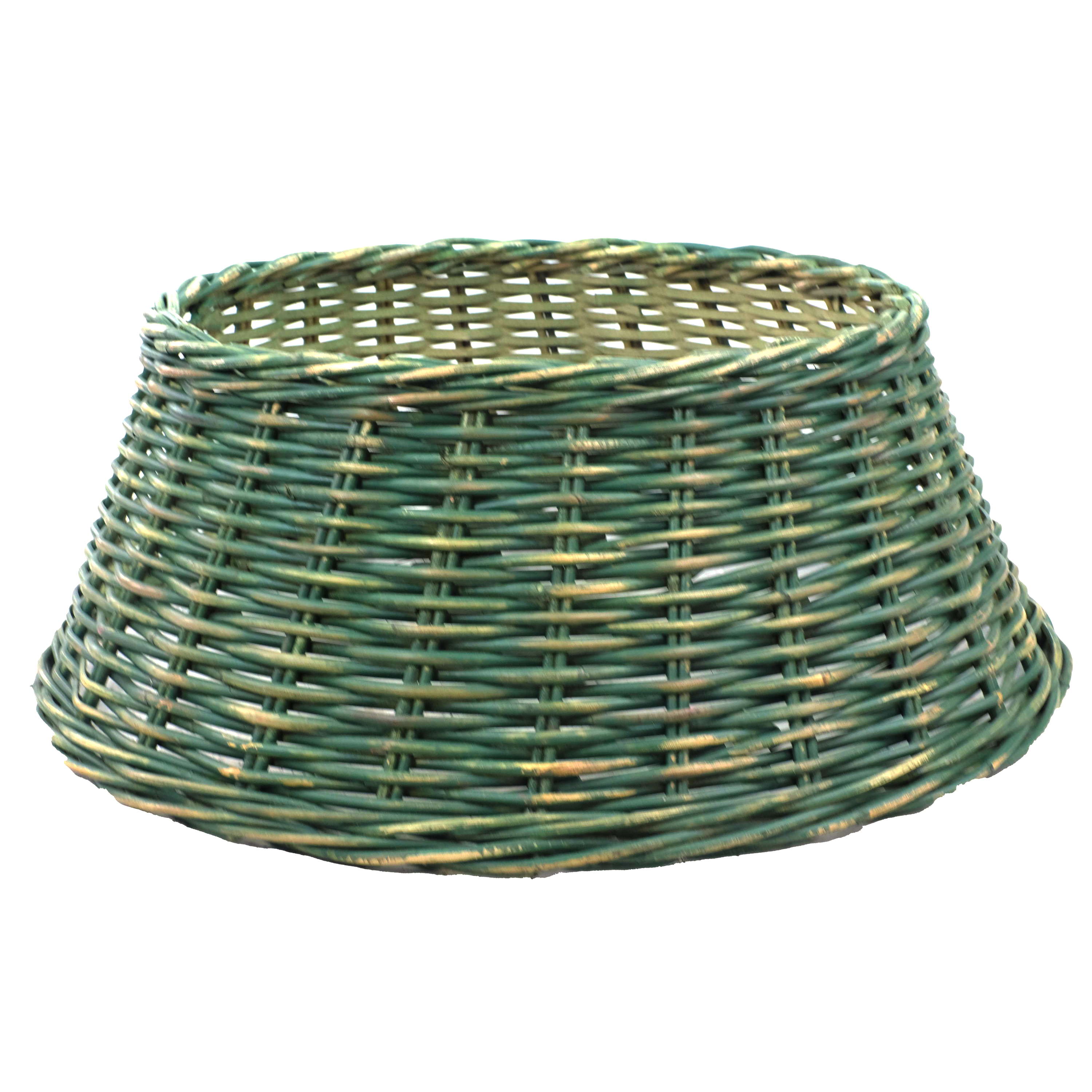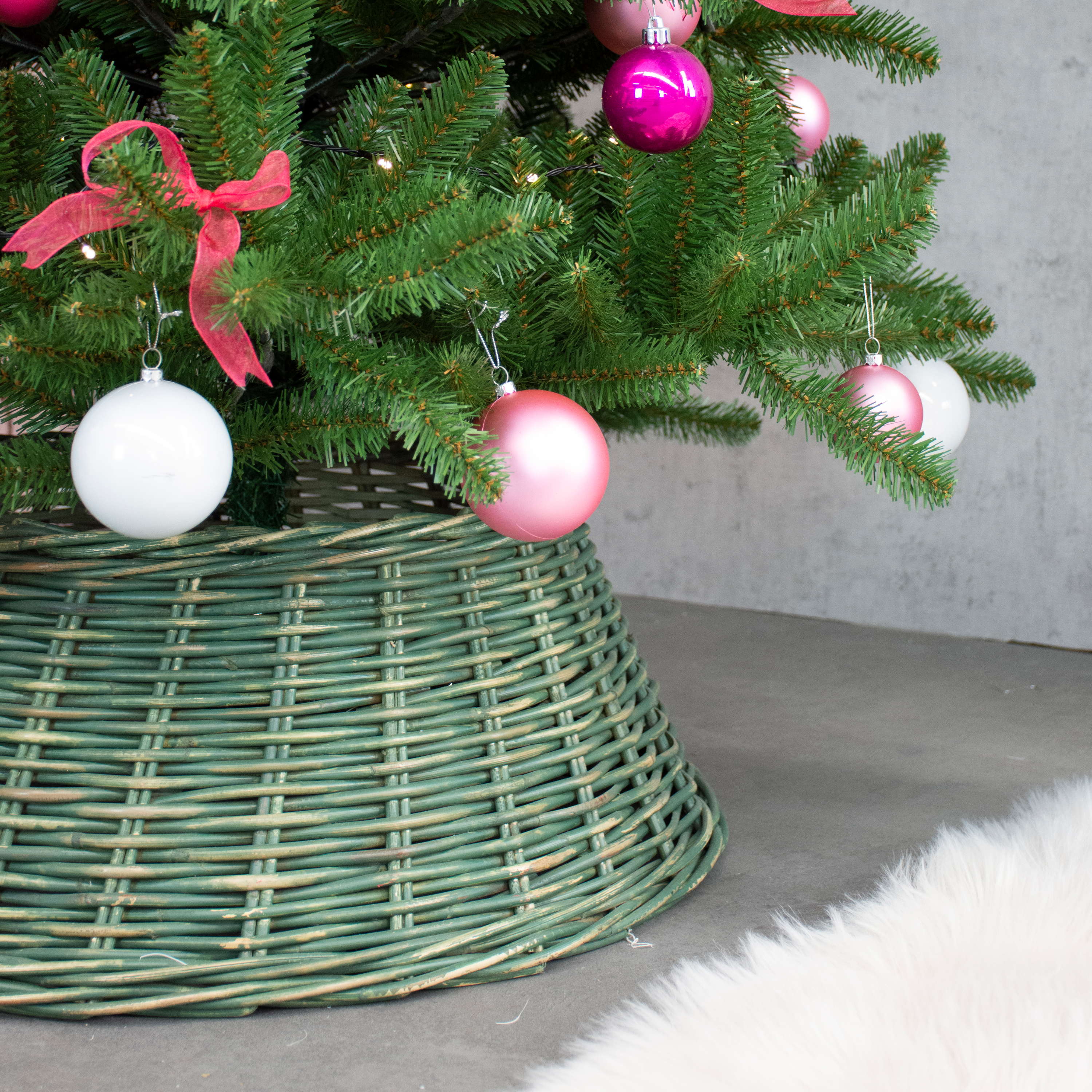 Christmas tree stand basket MACARIO made of rattan, green, 10"/26cm, Ø26"/65cm