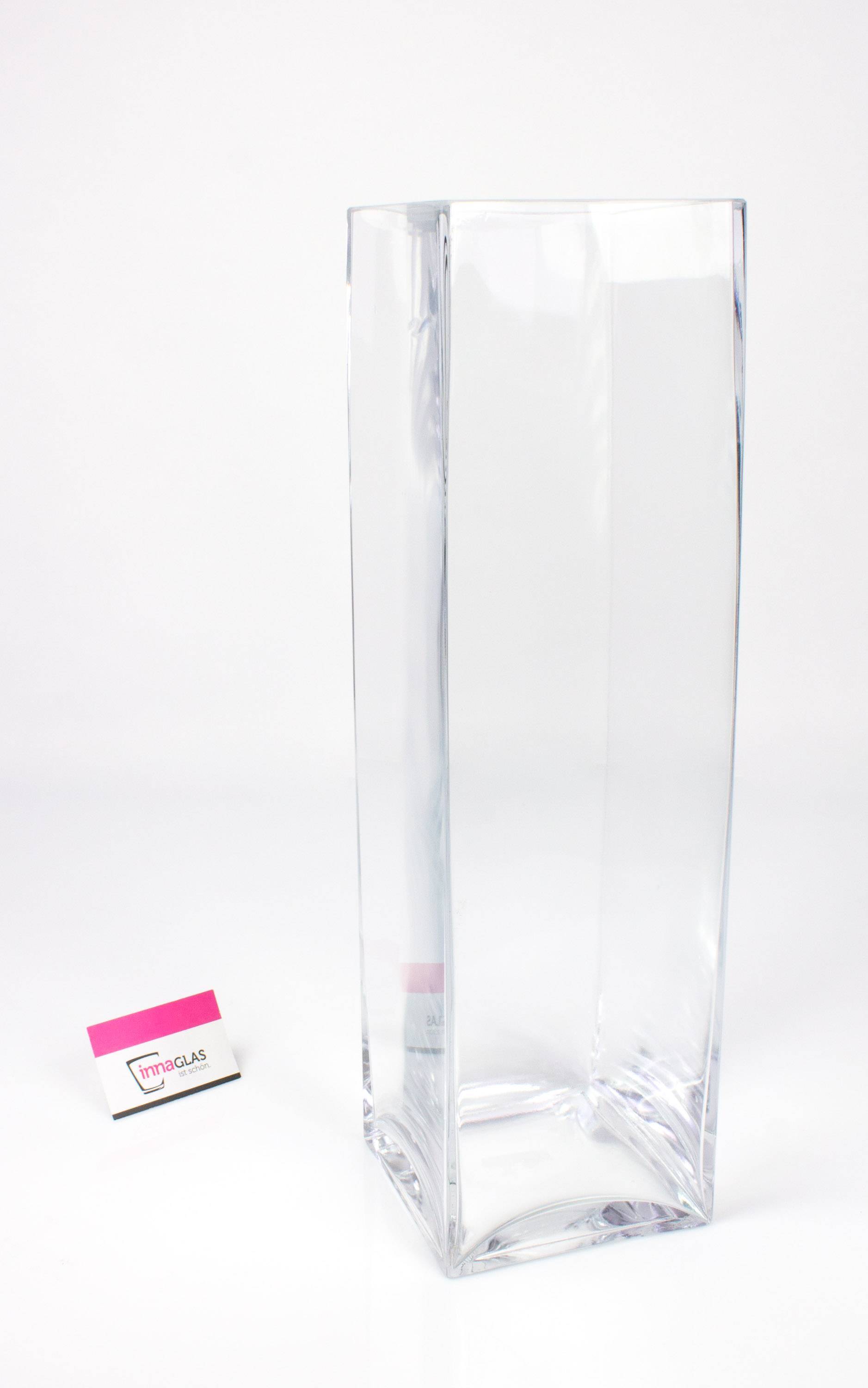 Large angular table vase JACK EARTH with the dimensions 5.5" x 5.5" x 19.3"/14 x 14 x 49 cm. This glass offers enough space for all your decorating ideas in combination with flowers, twigs, sand and stones.