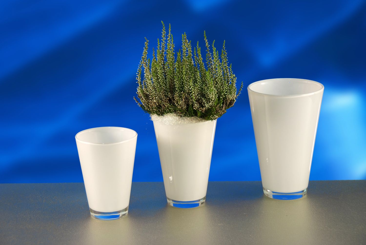 Conical flower vase ANNA EARTH made of glass, white, 6"/15cm, Ø4.3"/11cm