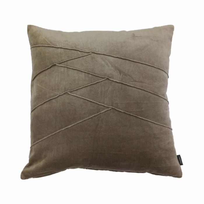 Cuddly velvet cushion NOELANI, diagonal decorative stitching, light brown, 18"x18"/45x45cm