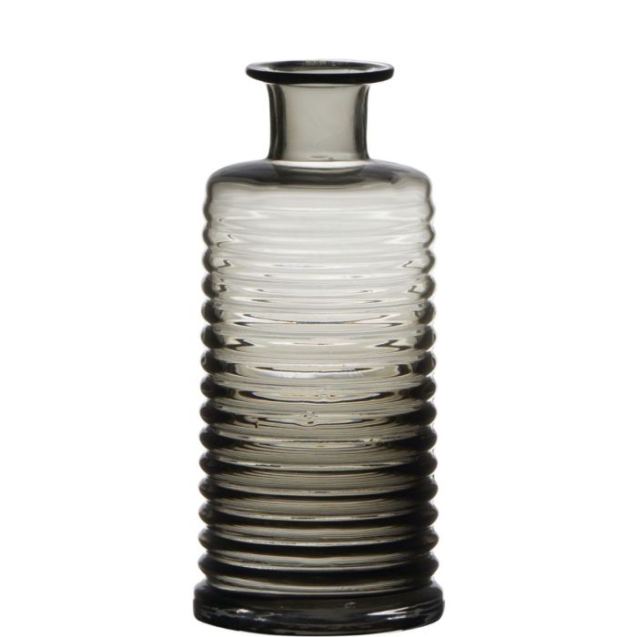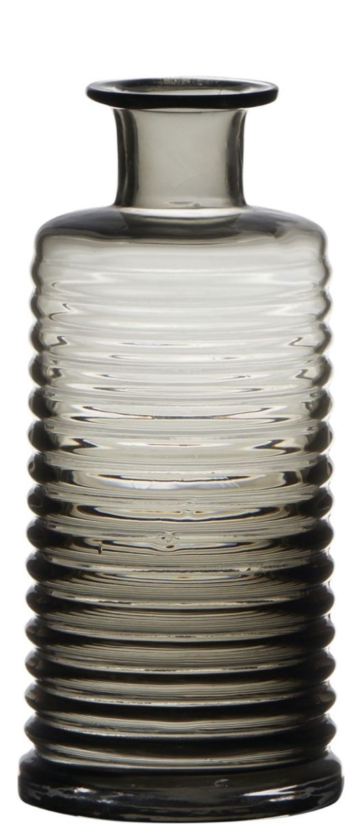 Decor glass bottle STUART with grooves, grey-clear, 12"/31cm, Ø5.7"/14,5cm