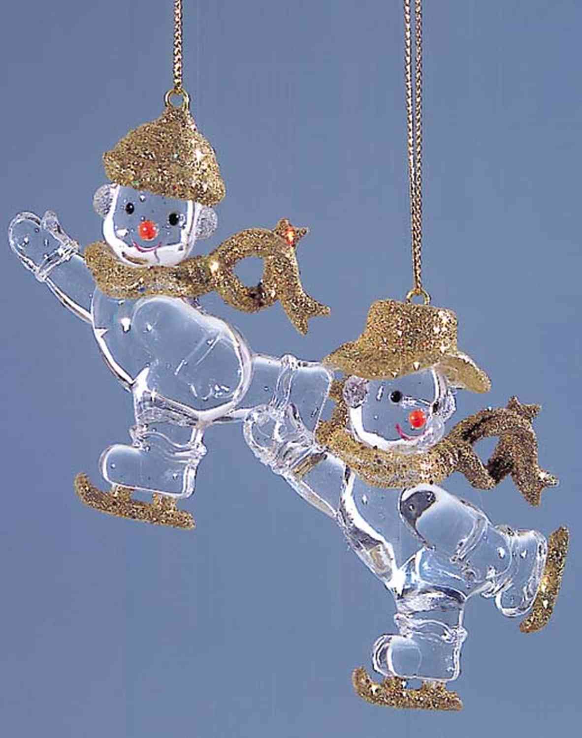 Decorative acrylic pendant snowman, 2 pieces, glitter, gold, 1.2"x3.1"/3x8cm