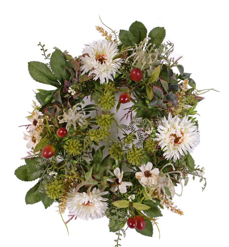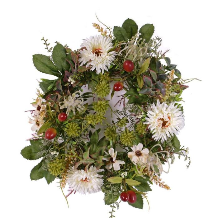 Decorative autumn wreath SABINE, with gerbera, cream, Ø 12"/30cm