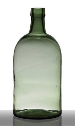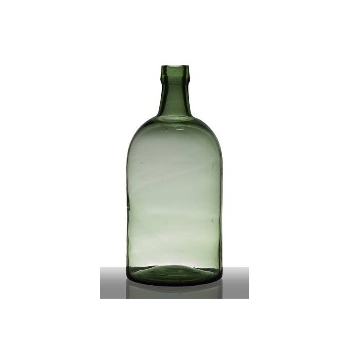 Decorative bottle of glass FRANKIE, cylinder/round, clear/green, 16"/40cm, Ø7"/19cm