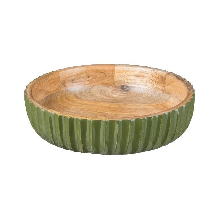 Decorative bowl MARAMA made of mango wood, fluted, green-natural, 2.4"/6cm, Ø8"/20cm
