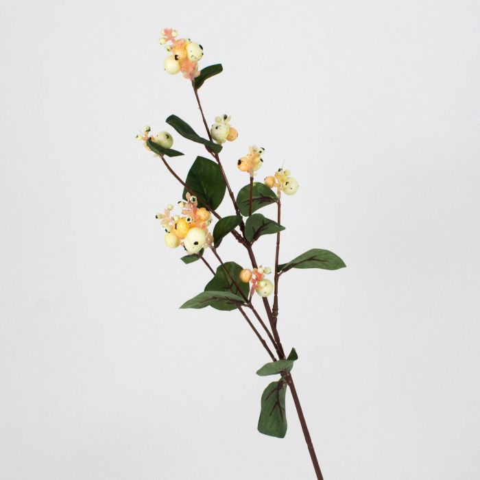 Decorative branch snowberry NERINA with berries, apricot-cream, 20"/50cm