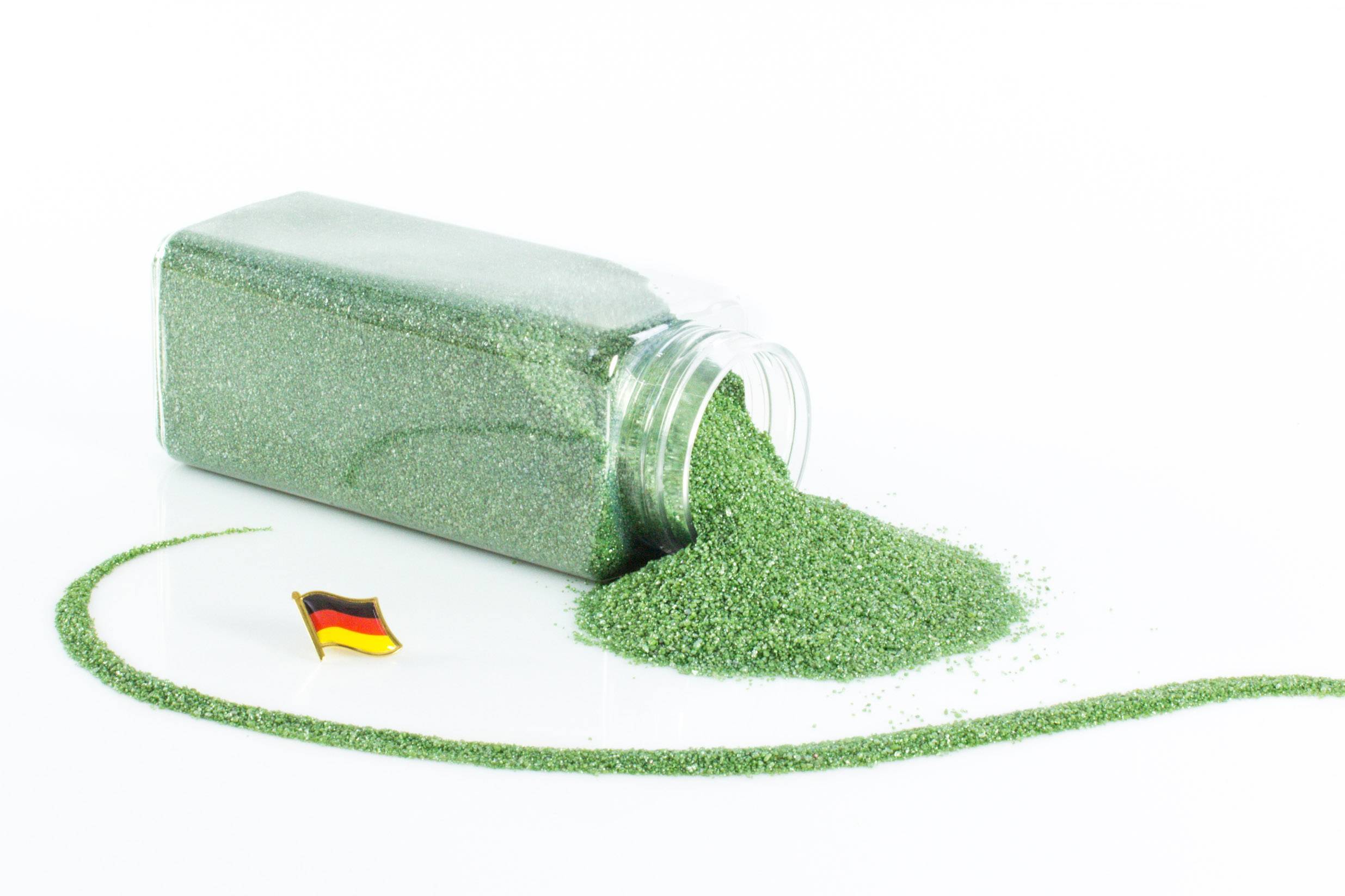 Decorative coloured sand TIMON, glossy moss green, 0,1-0,5mm, 605ml bottle, manufactured in Germany