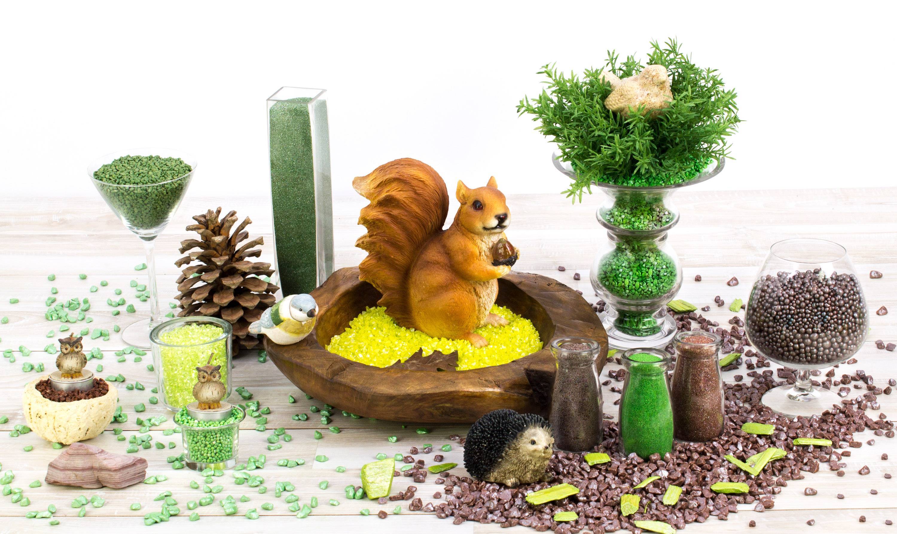 - Fine grade sand chippings coloured in pigment colour glossy moss green, this colour is harmless to animals and plants