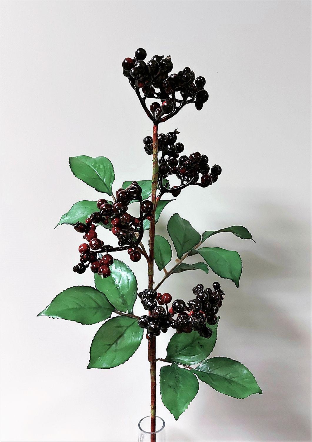 Decorative elderberry branch CHATANGA with fruits, burgundy red-black, 24"/60cm