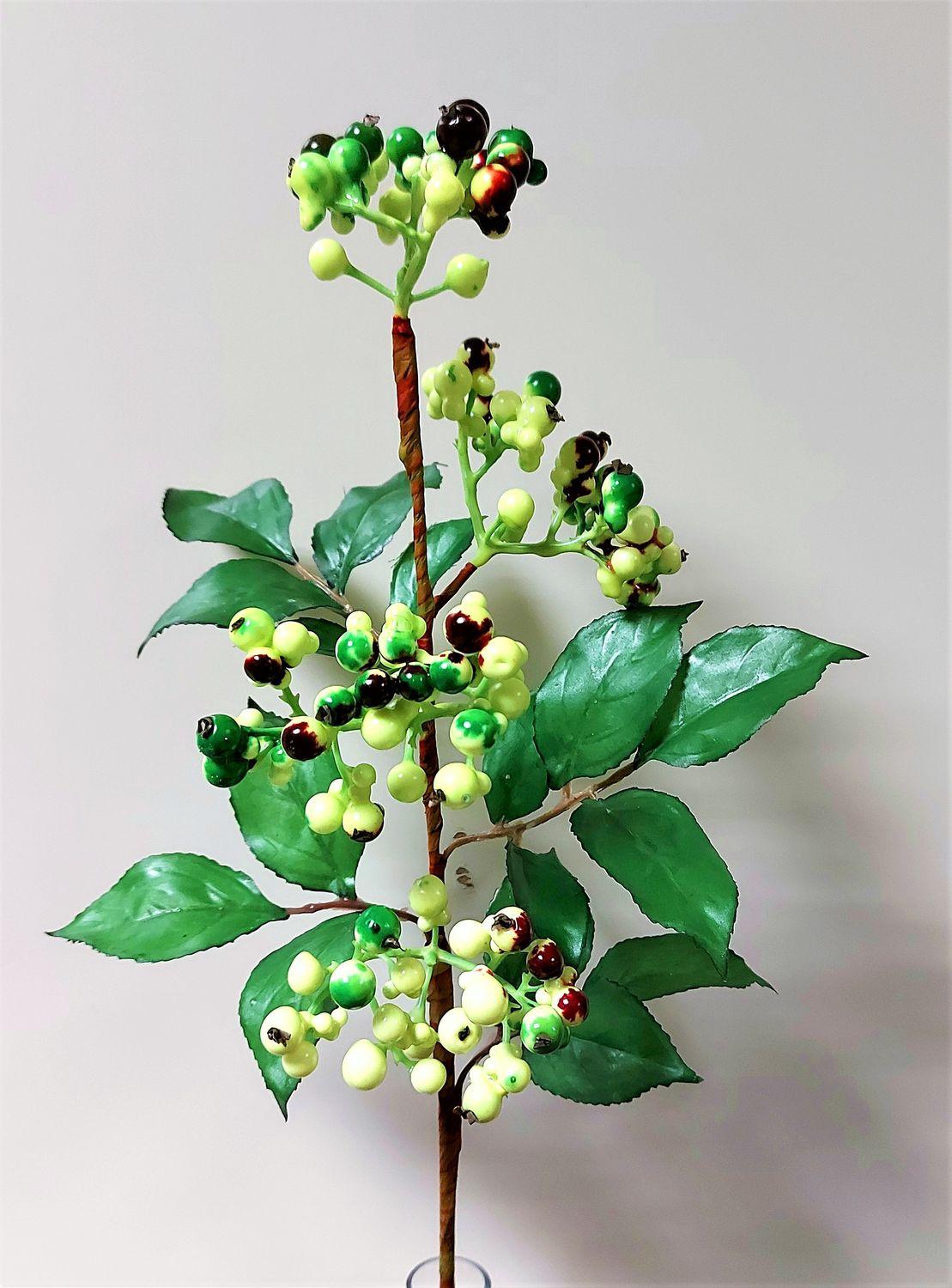 Decorative elderberry branch CHATANGA with fruits, green-red, 24"/60cm