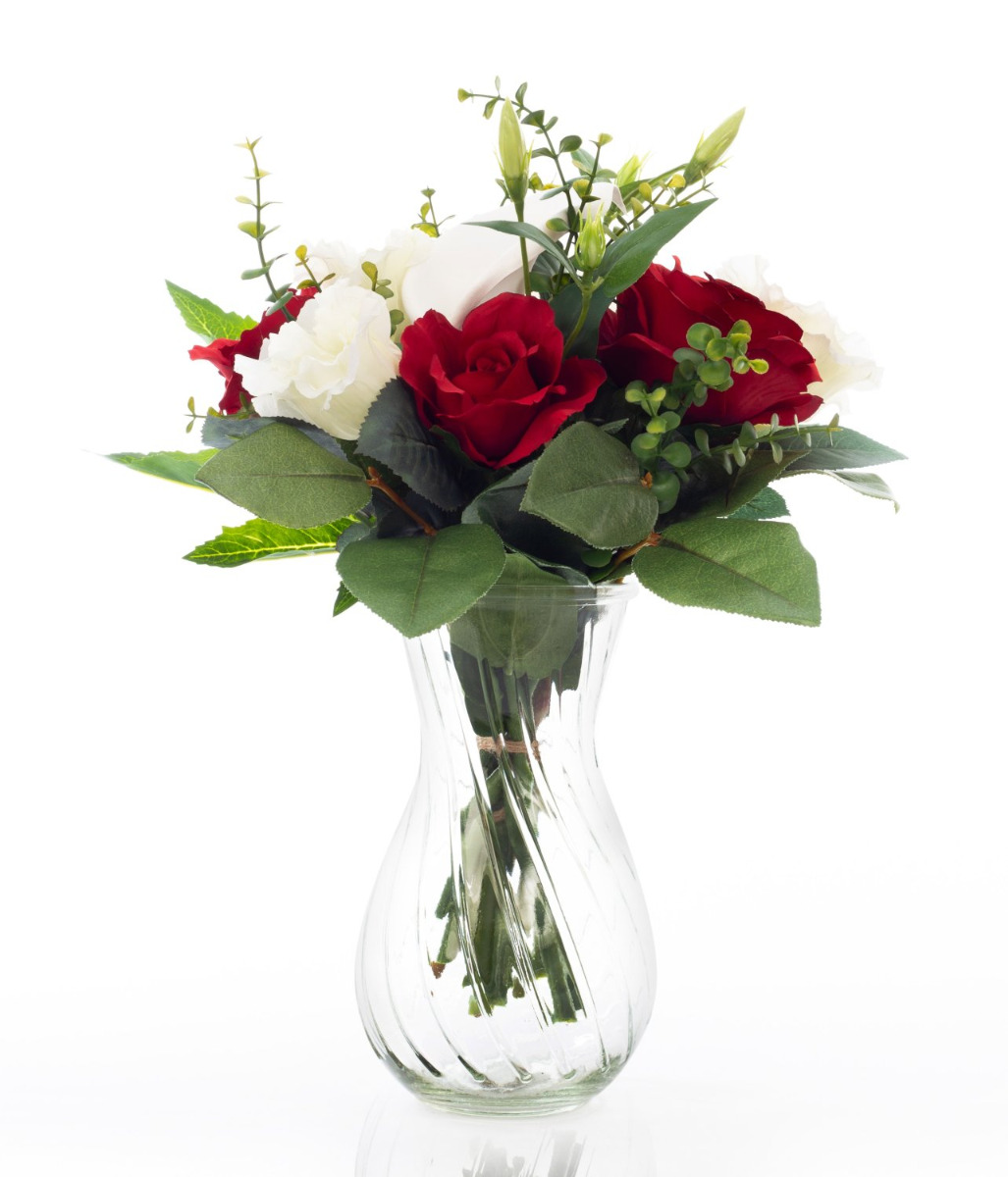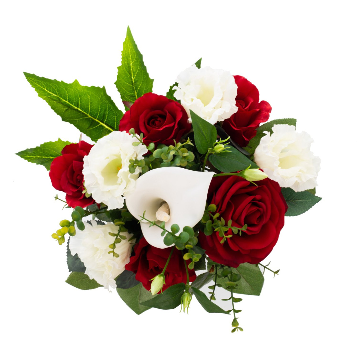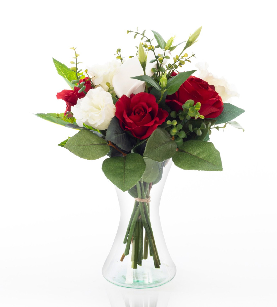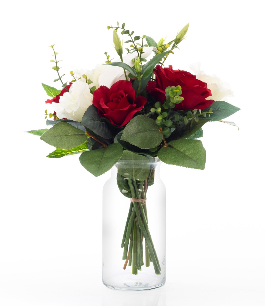 Decorative elegant flower bouquet ELAYNA, red-white, 35cm, Ø30cm