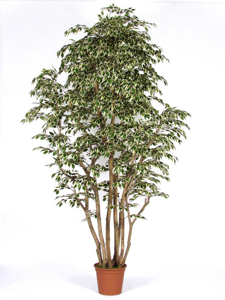 Decorative Ficus Benjamina MIMITIGO, real stems, green-white, 6ft/175cm - Made in Italy