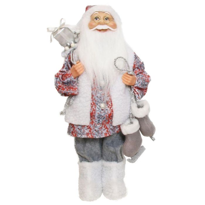 Decorative figurine Father Christmas ABENZIO, ice skates, gift bag, white-grey-red, 22x14x45cm