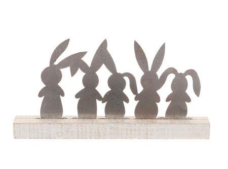 Decorative figurine Metal bunnies CINCO on wooden foot, natural-grey, 14"x2"x7"/35x5x18cm