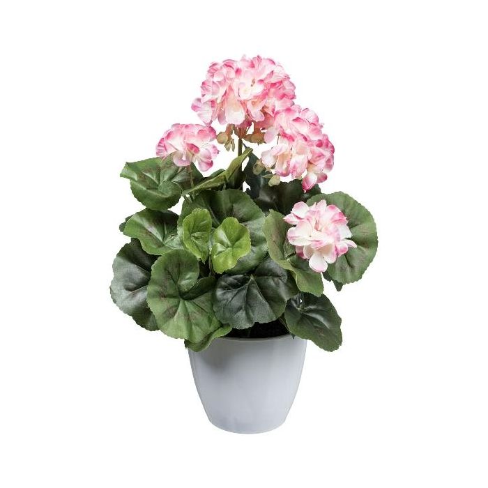 Decorative flower Geranium KLUMOR in melamine planter, pink-white, 14"/35cm
