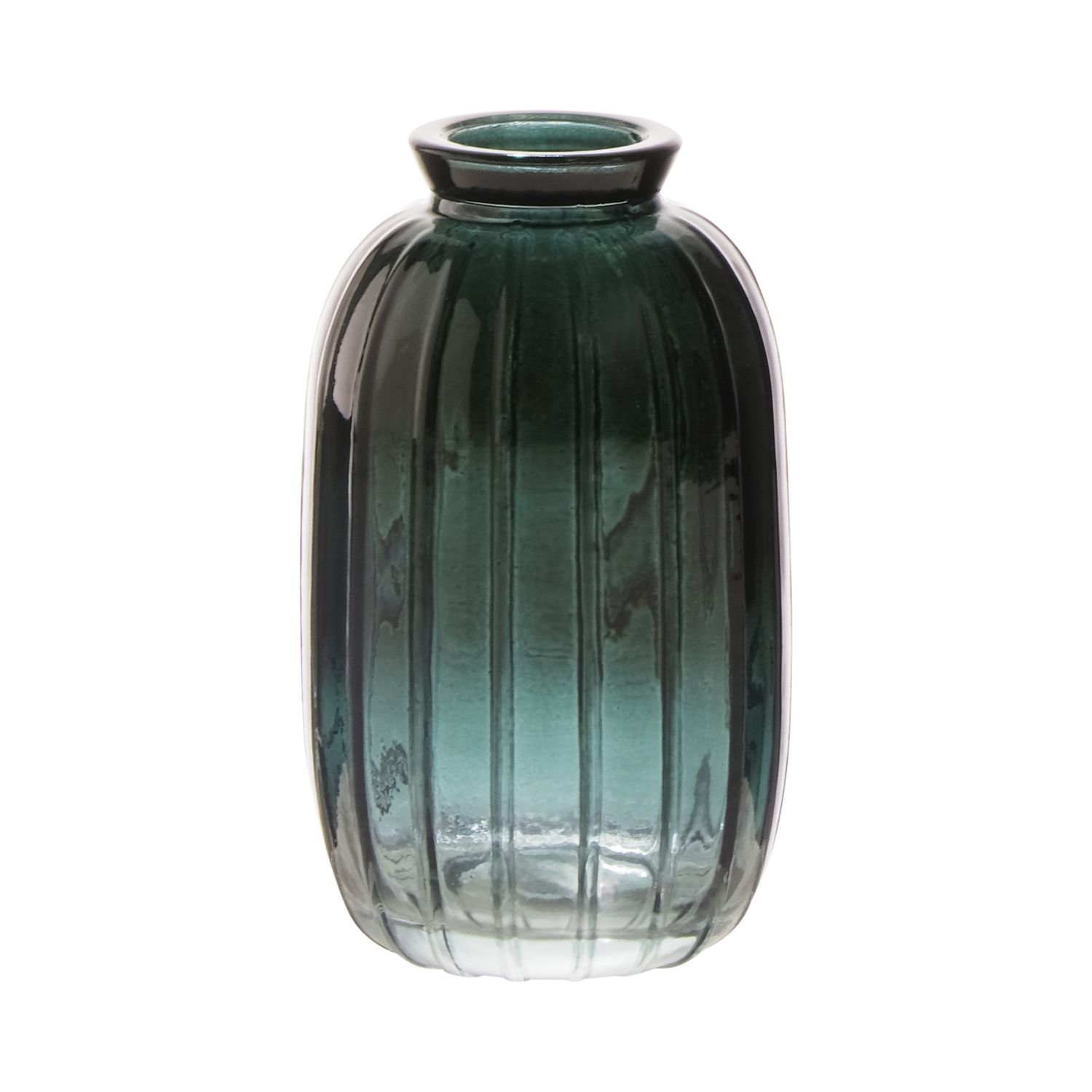 Decorative glass bottle SILVINA with grooves, forest green clear, 11,8cm, Ø7cm
