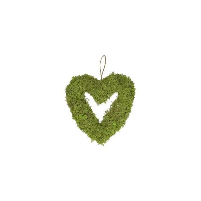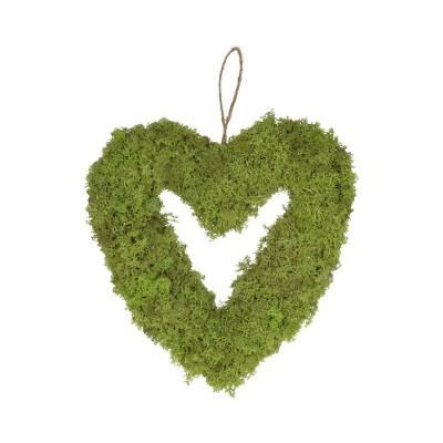 Decorative heart wreath MADISSON made of Iceland moss, for hanging, light green, 2"/5cm, Ø12"/30cm