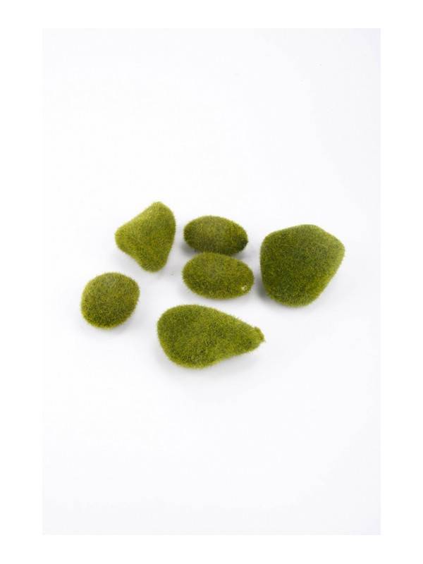 Decorative moss stones BAHIA, 6 pieces, green, 4.7"x6.3"x2"/12x16x5cm