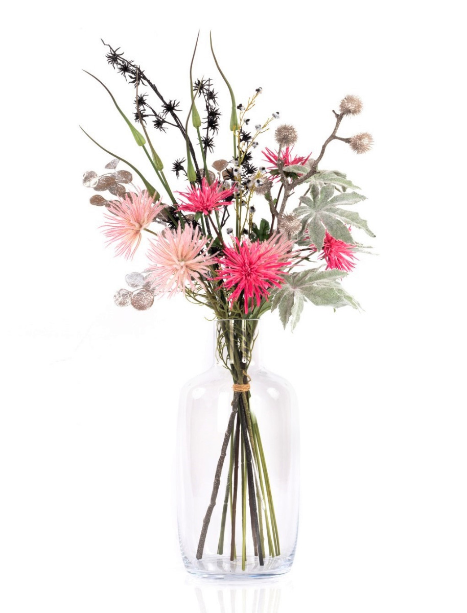 - Tied together with a sisal cord, the flowers and branches can be shortened individually or used separately for creative projects after removing the cord