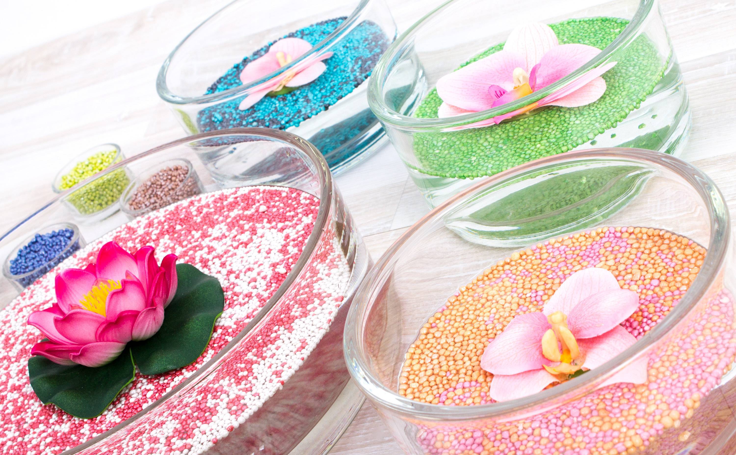 The decorative pearls SAMMY are delivered in a 605 ml bottle and look especially good in floating bowls.