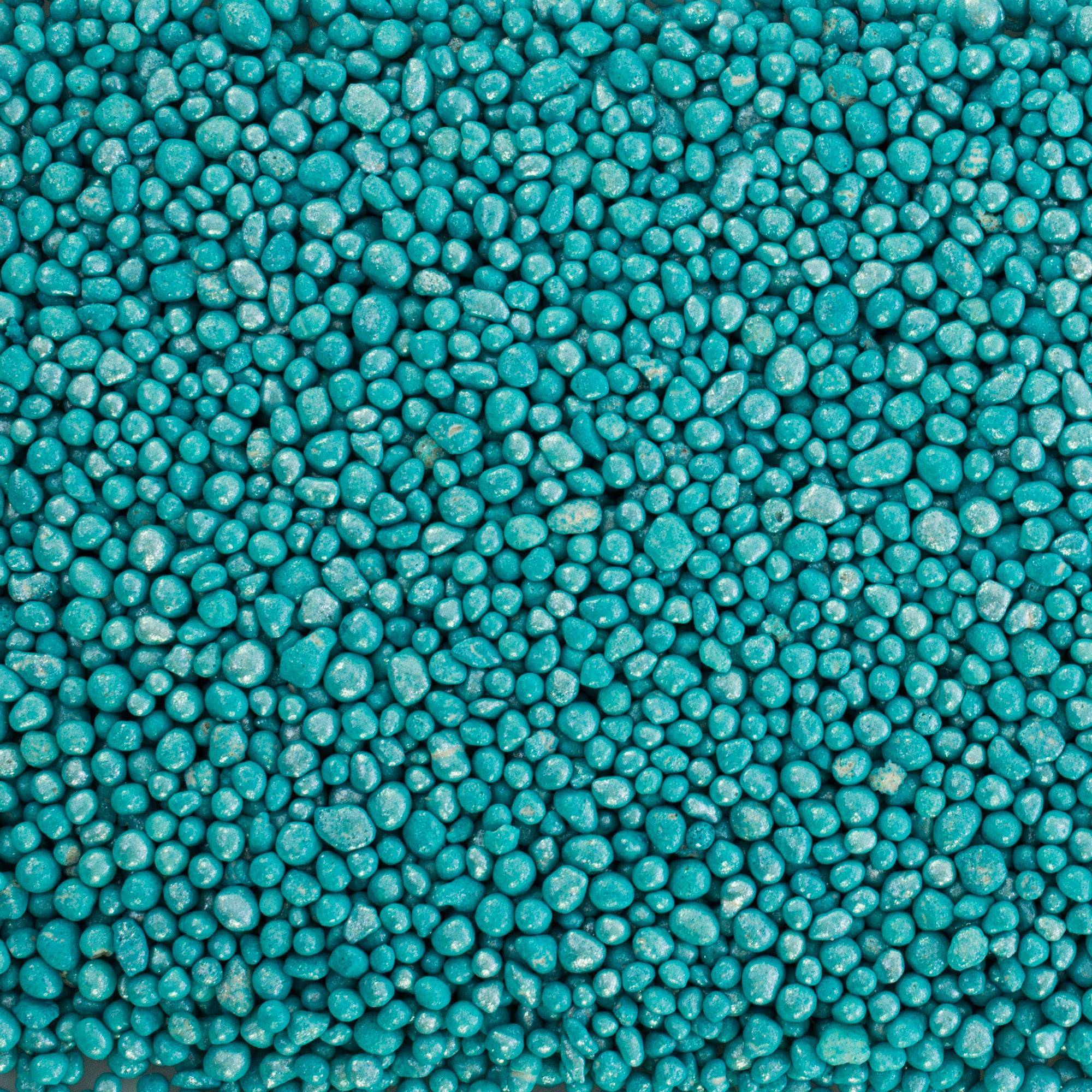 - Differently sized floating beads made of expanded glass granulate coloured in pigment colour glossy turquoise, this colour is harmless to animals and plants