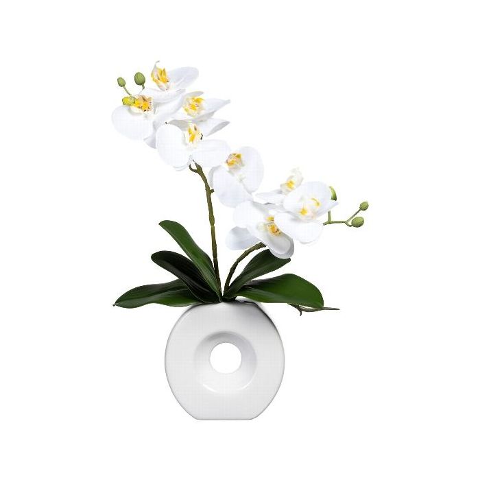 Decorative Phalaenopsis orchid DRELMOR, ceramic vase, roots, white, 14"/35cm