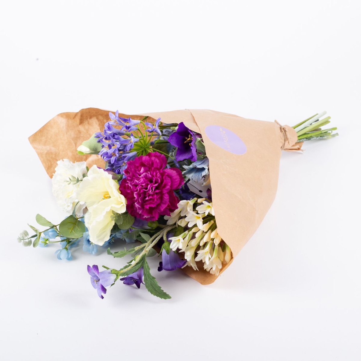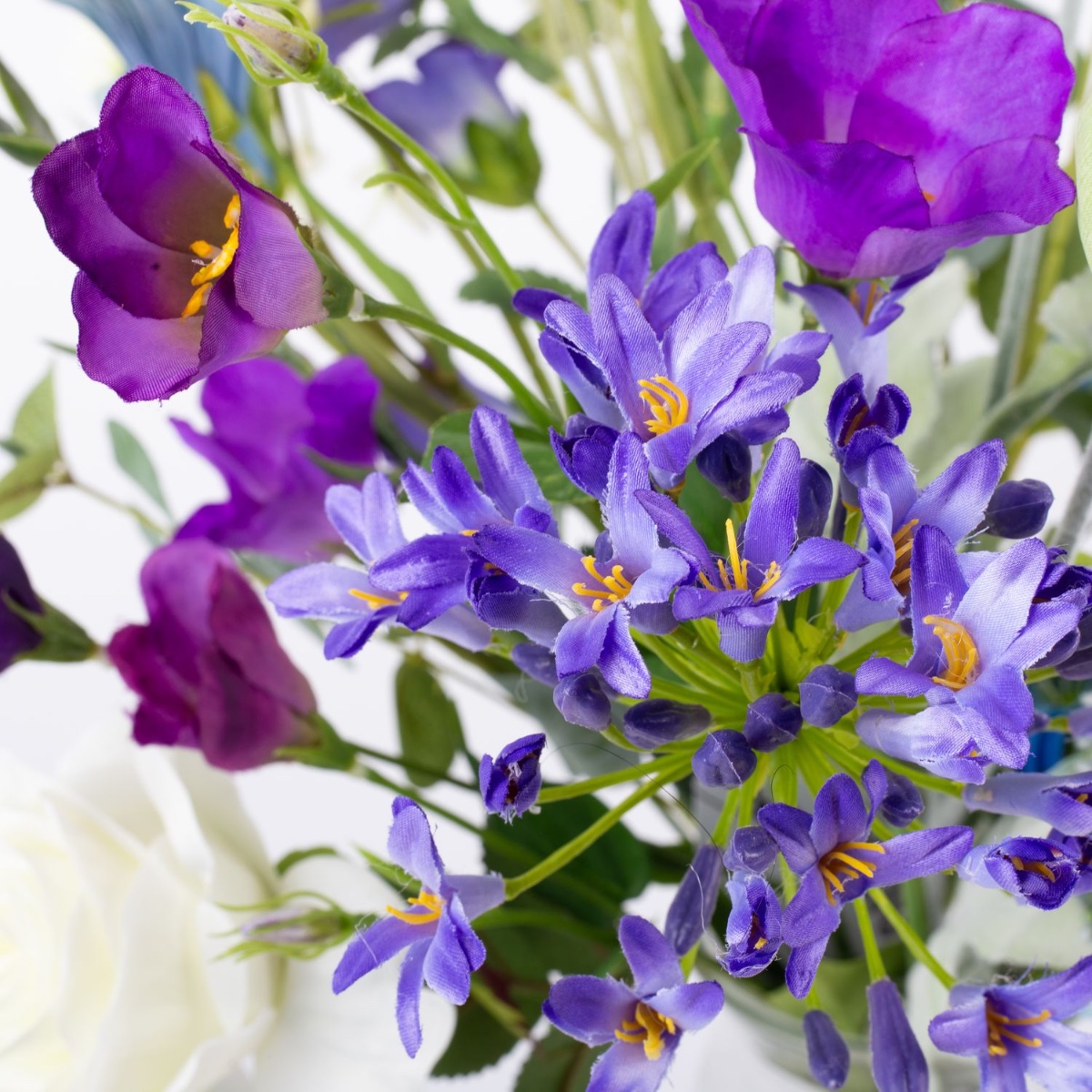 Decorative spring bouquet AVIL, purple-blue-white, 24"/60cm, Ø18"/45cm