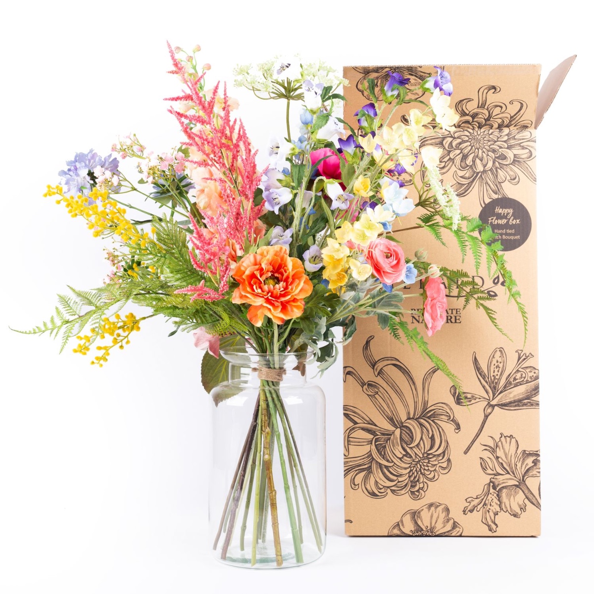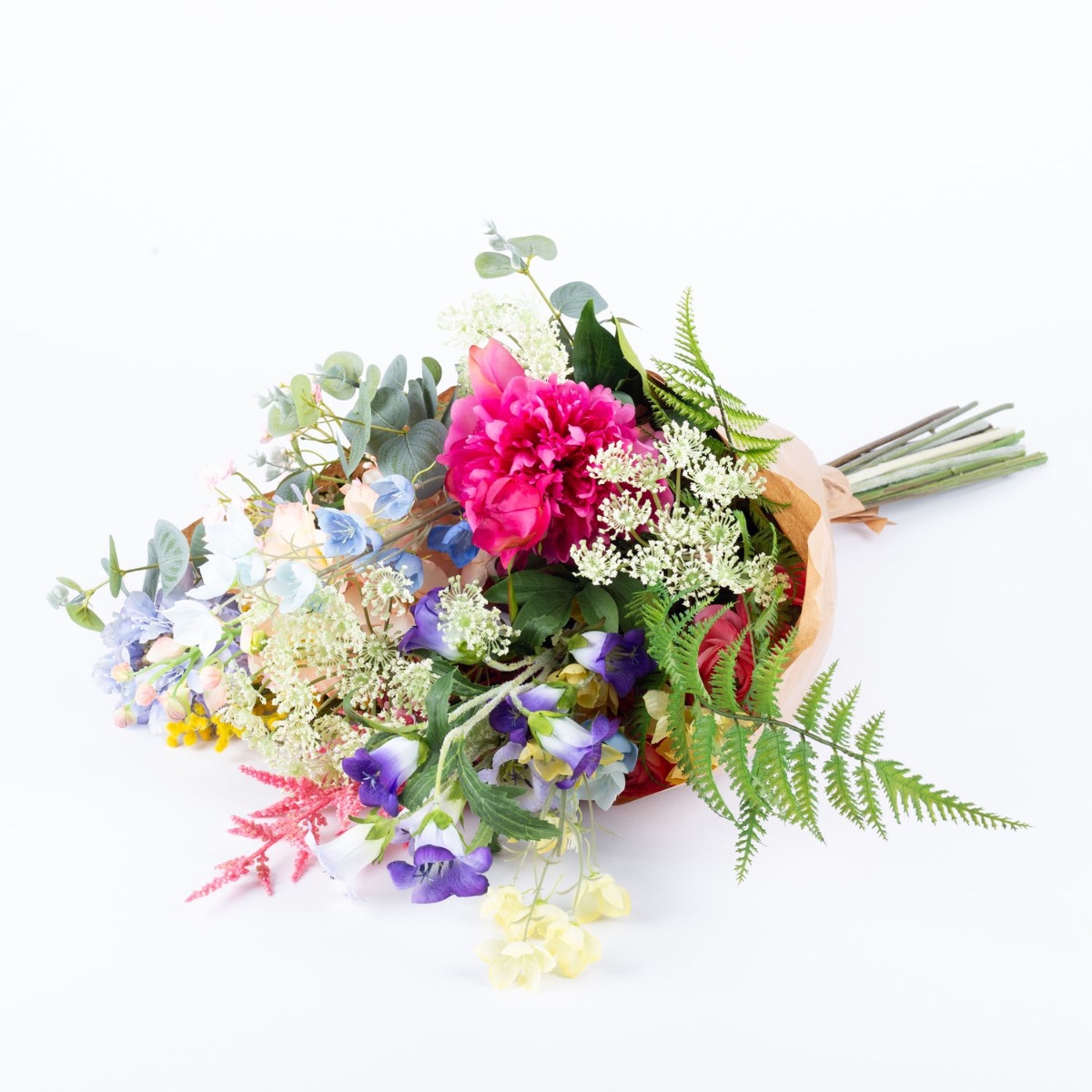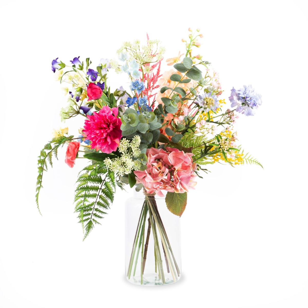 Decorative spring bouquet AVIV, pink-purple-yellow, 30"/75cm, Ø22"/55cm