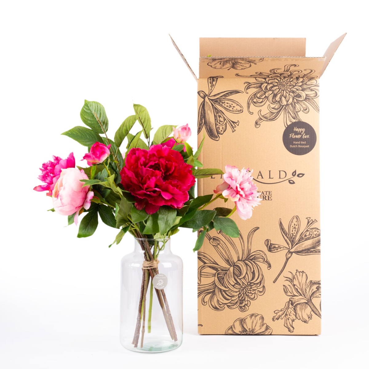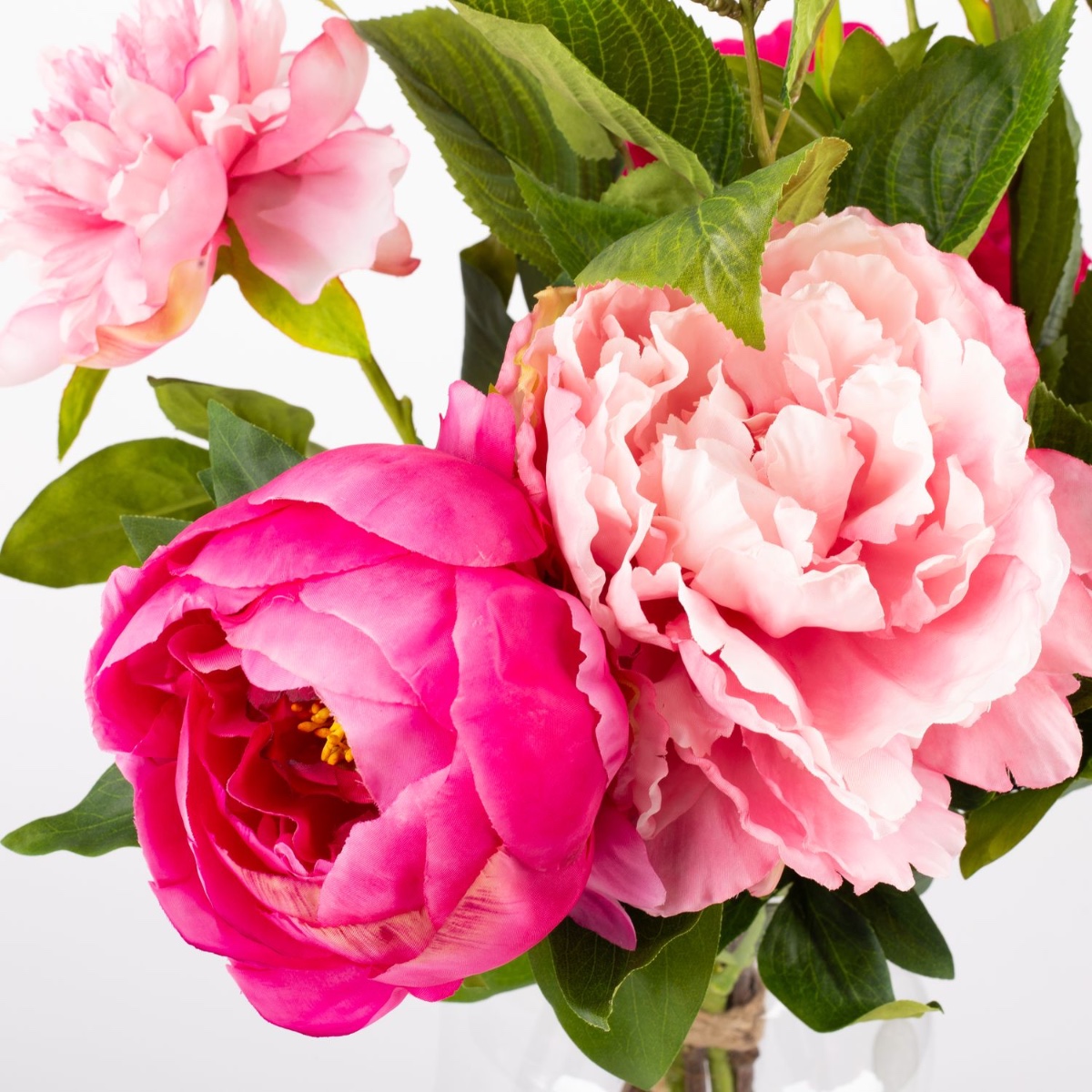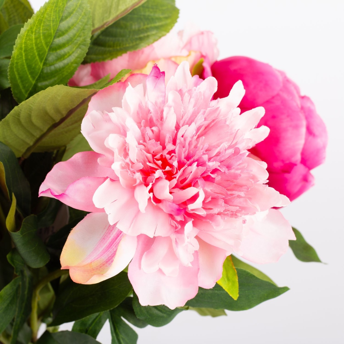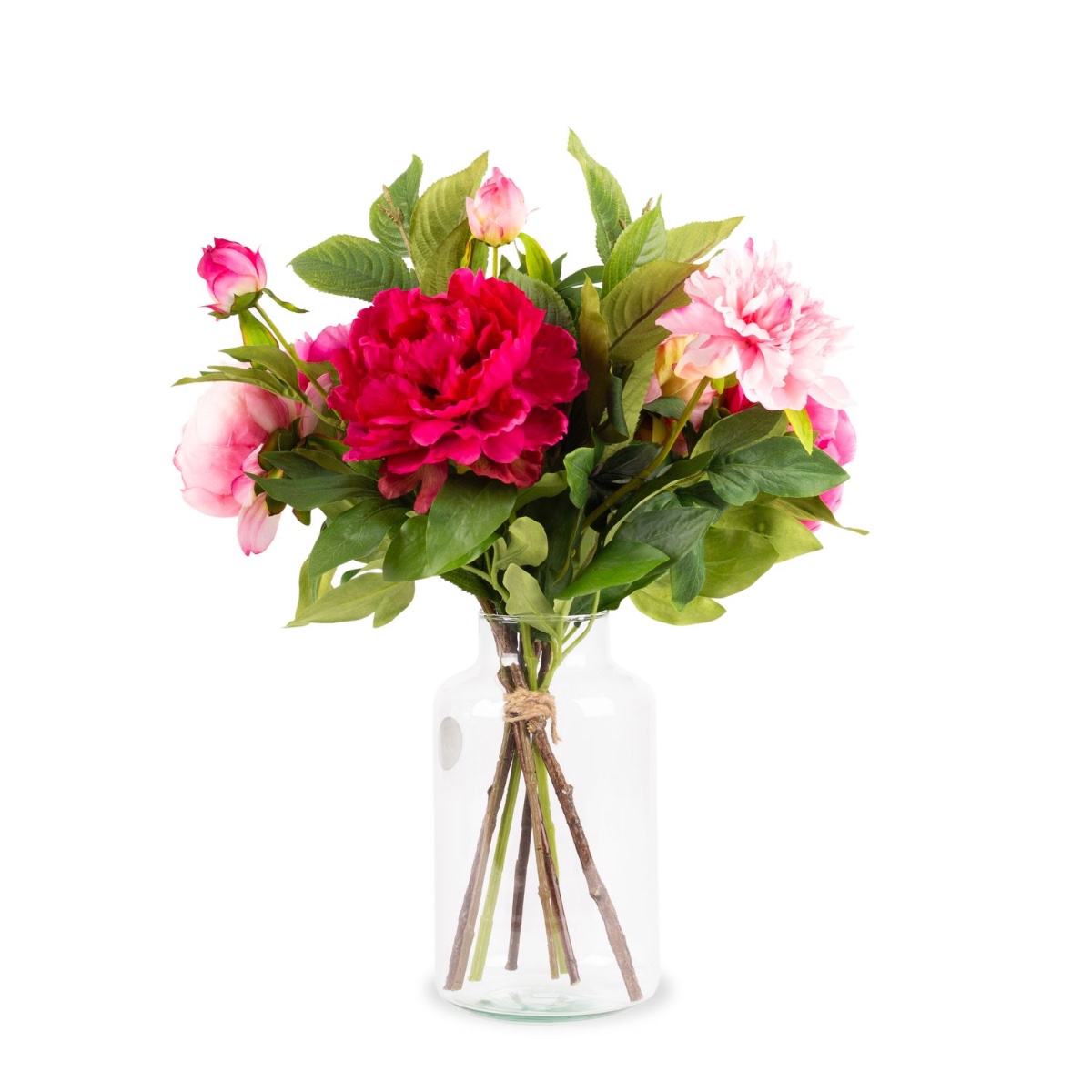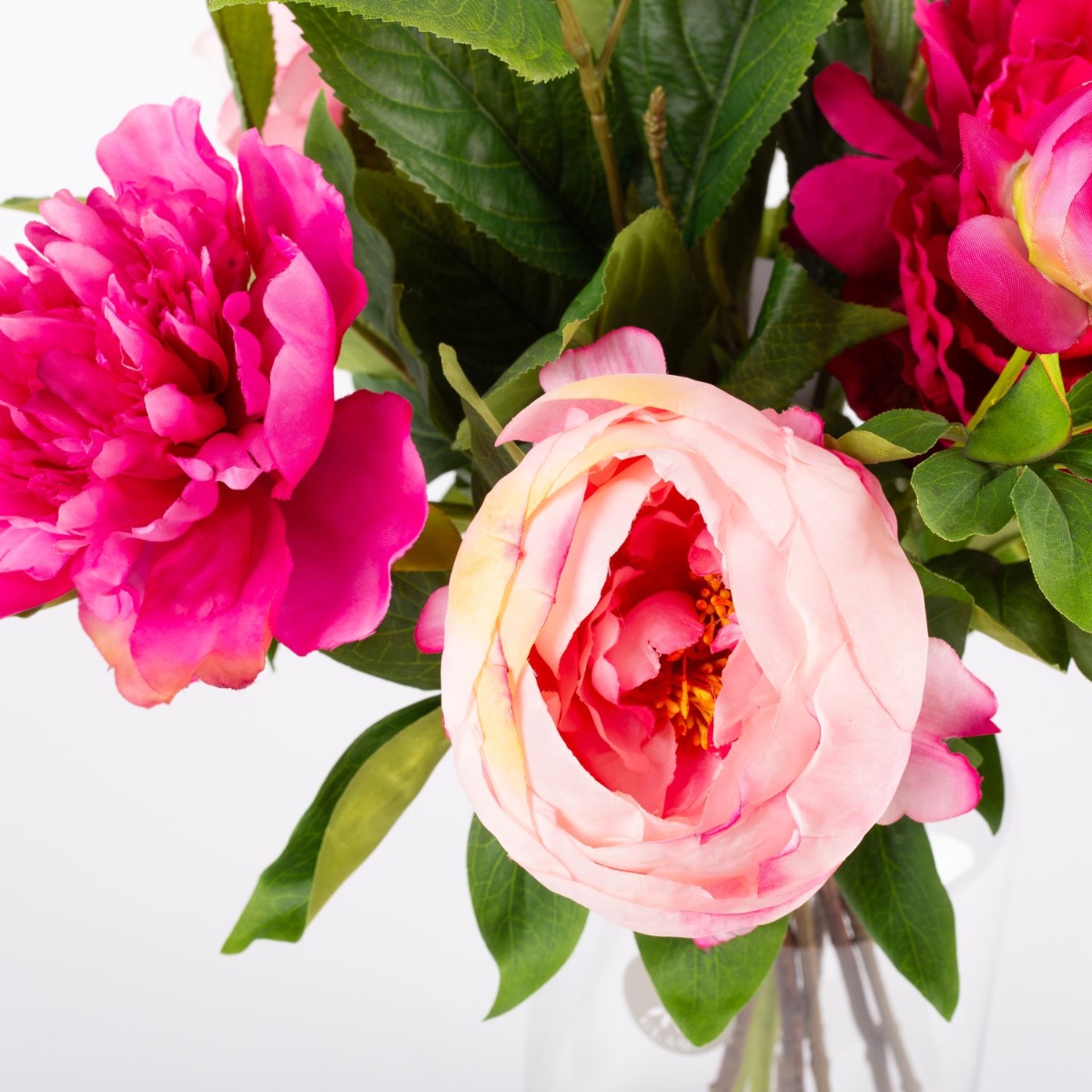 From fuchsia to pale pink. With their full, luscious flowers, peonies come in almost every shade of pink, from dark to light. This early summer floral splendour is perfect for the season and brings a fresh touch of colour to any room. This bouquet of peonies looks so real, as if it had been plucked straight from the garden. You almost have to touch them to realise that they are high-quality artificial flowers crafted from fabric.