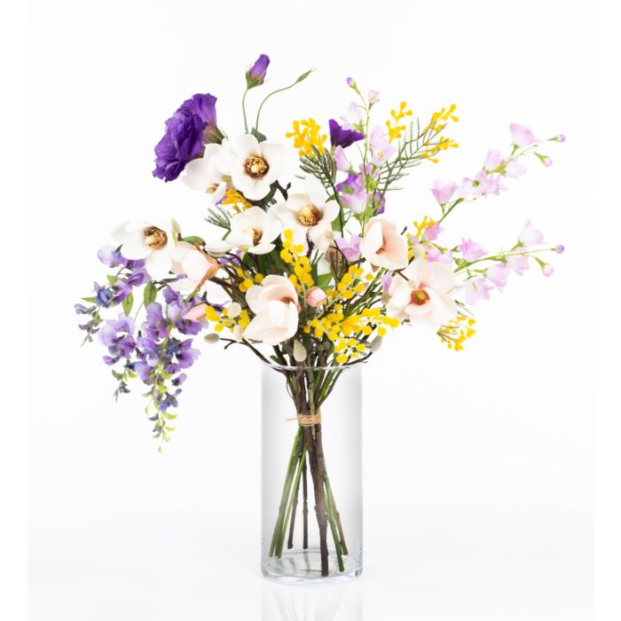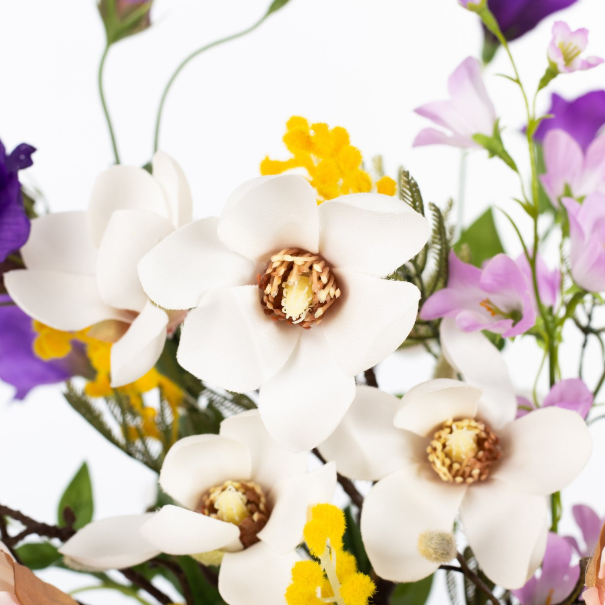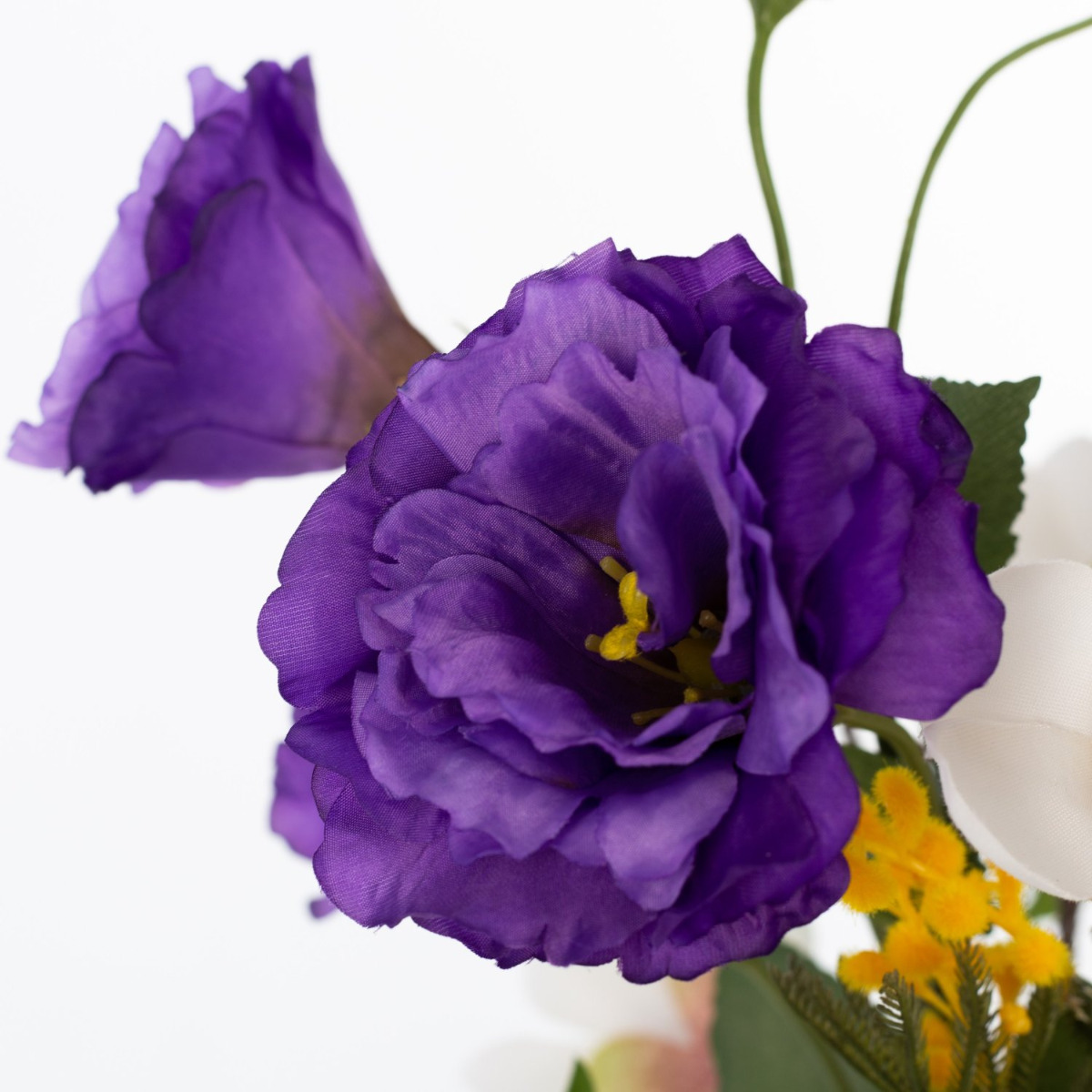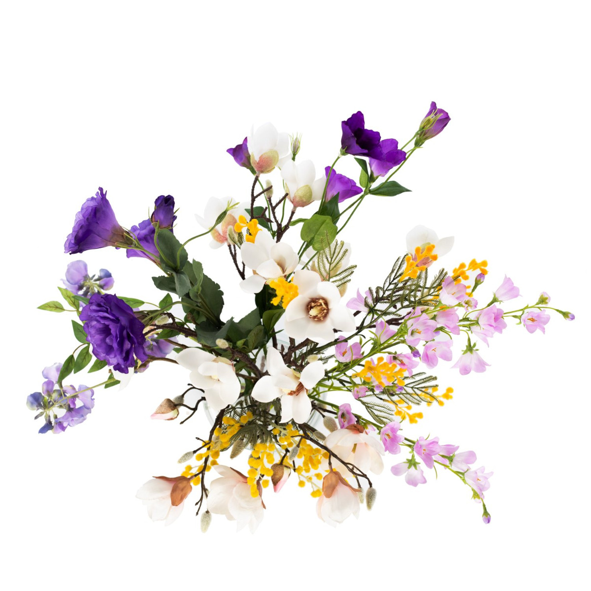 Decorative spring flowers bouquet CALISSA, purple-yellow, 60cm, Ø40cm