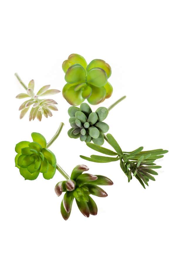 Decorative succulents JADON, spike, 6 pieces, green, 5"/13cm, Ø 2"/5cm