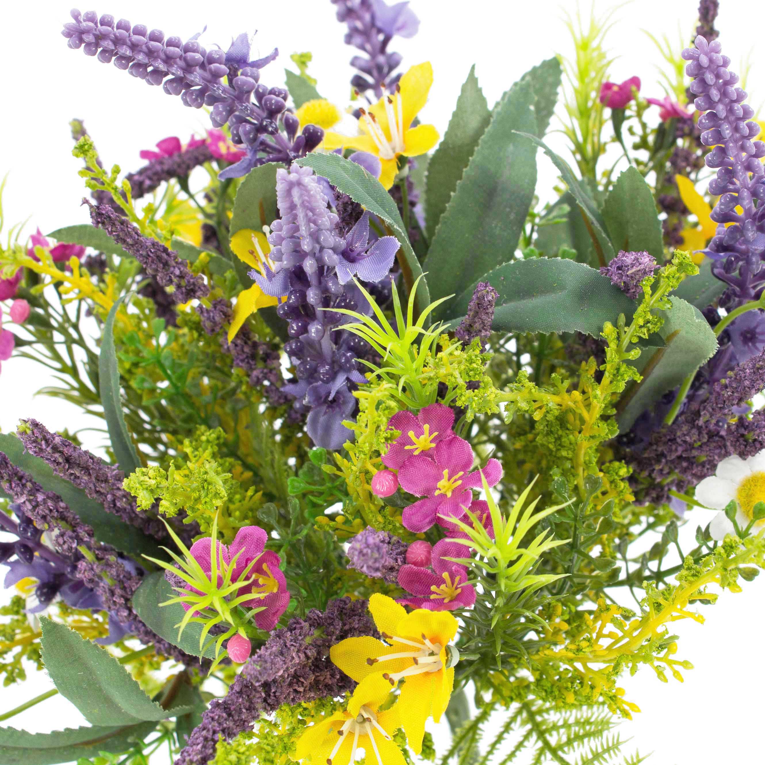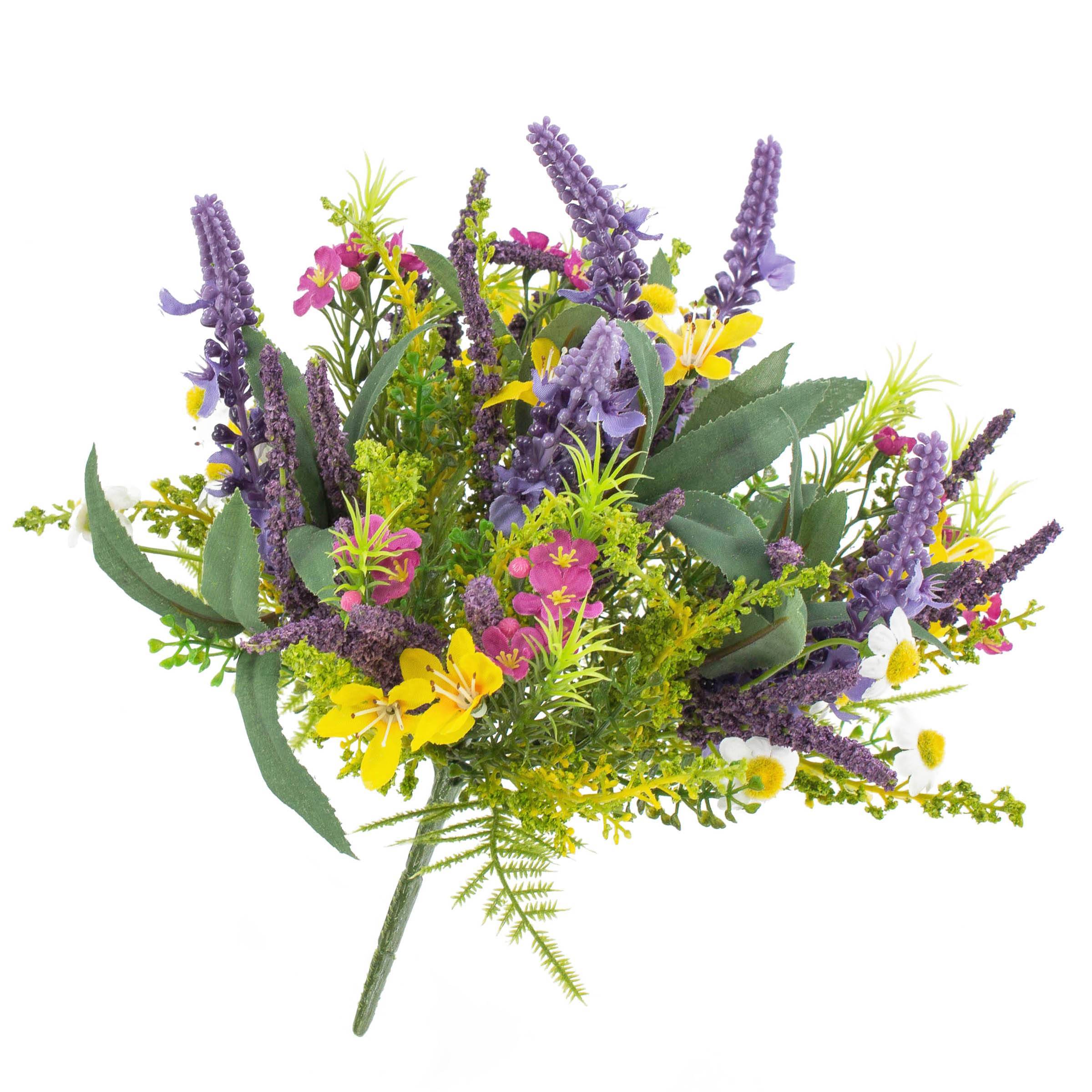Decorative summer bouquet ERIFE lavender buttercup, coloured, 10"/25cm, Ø 8"/20cm