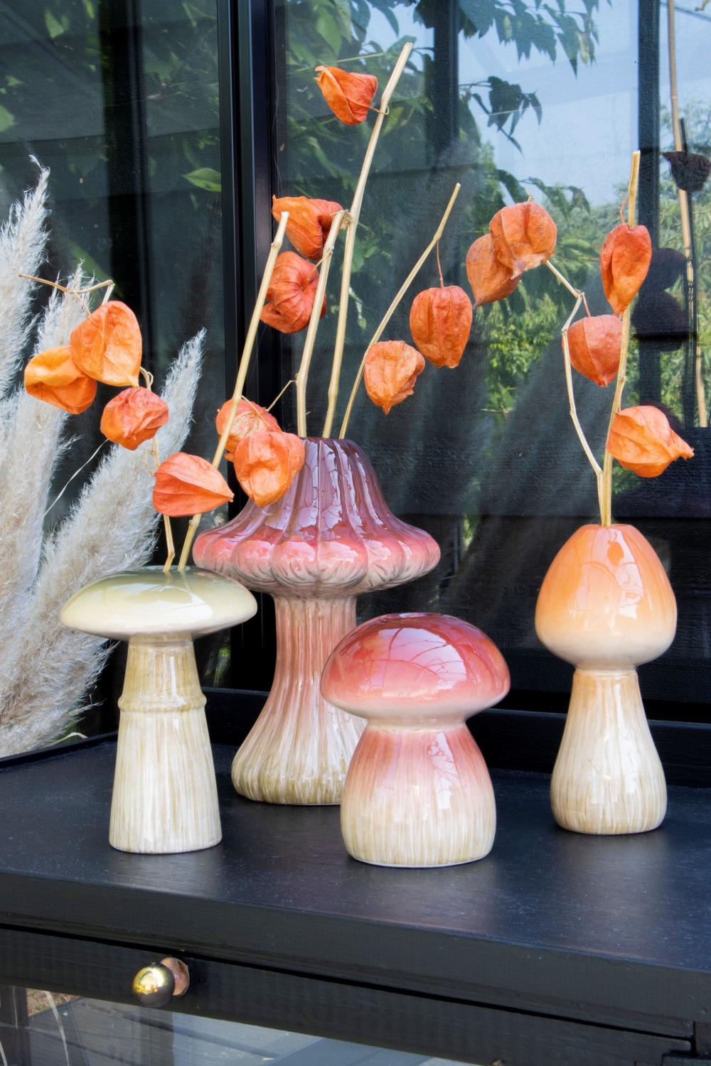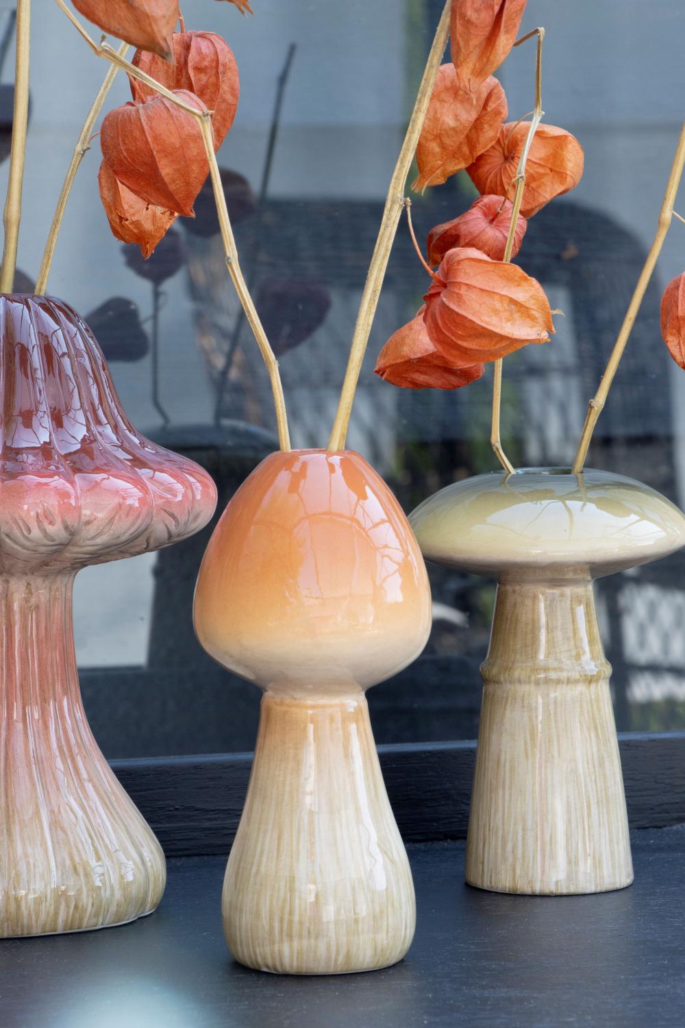 Decorative vase RADOMILA, ceramic, mushroom shape, orange-beige, 16cm Ø7,5cm