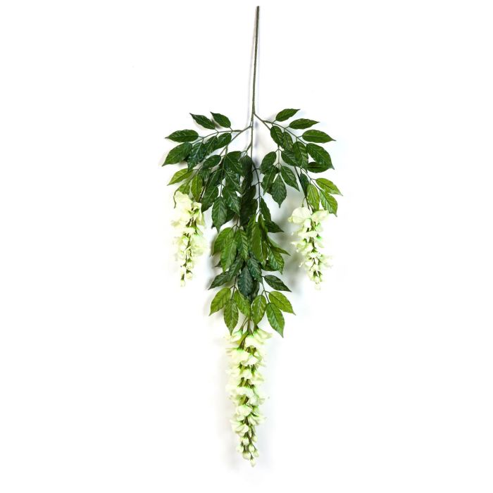 Decorative Wisteria branch LAUREN, flowering, cream, 33"/85cm