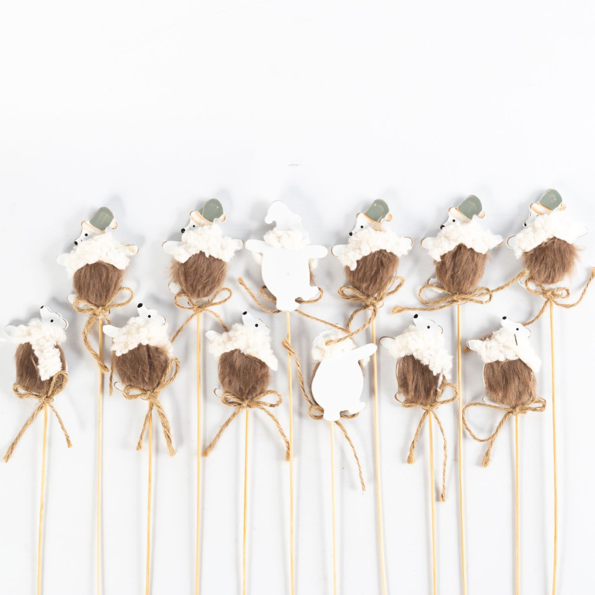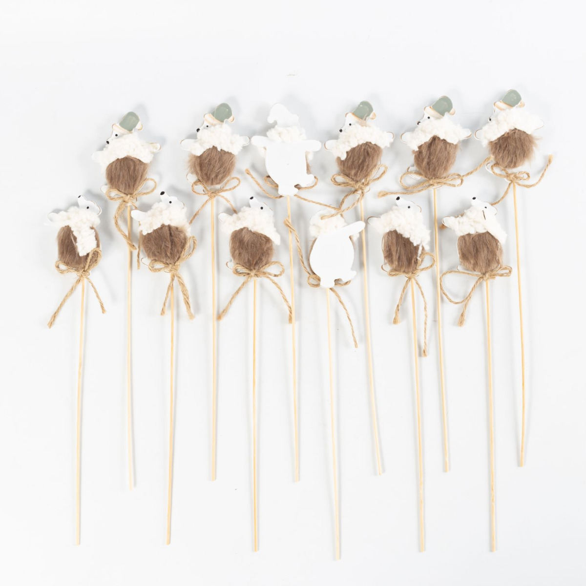 Decorative wooden pegs polar bear MOLLO, 12 pieces, white-grey, 2"x2.8"x13"/5x7x32cm & 2.4"x3.1"x13"/6x8x32cm