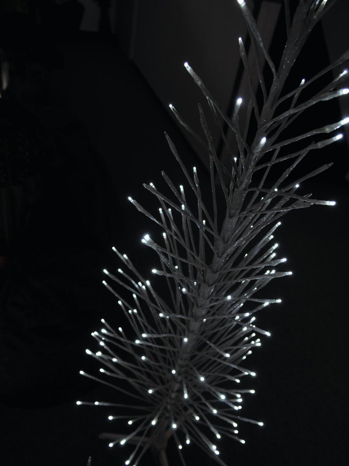 - There is a LED at each branch tip (flashing white), a total of 184 LEDs, 3mm, cold white (CW), 6.6 W