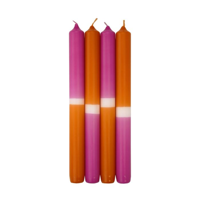 Dip Dye dinner candles LISSITA, 4 pieces, pink-apricot, 10"/25cm, Ø 0.9"/2,3cm, 11h