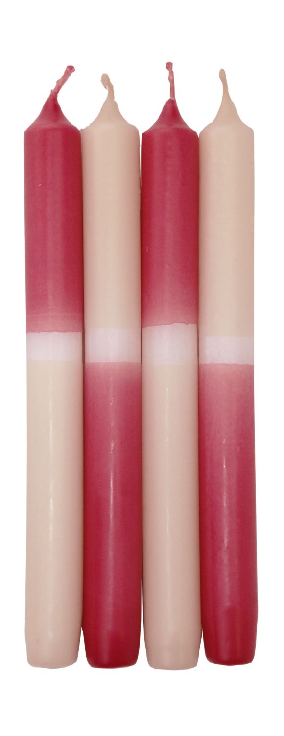 Dip Dye dinner candles LISSITA, 4 pieces, raspberry-cream, 10"/25cm, Ø 0.9"/2,3cm, 11h
