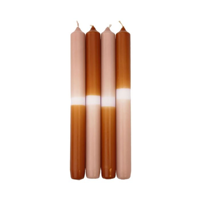 Dip Dye dinner candles LISSITA, 4 pieces, salmon-cognac, 10"/25cm, Ø 0.9"/2,3cm, 11h
