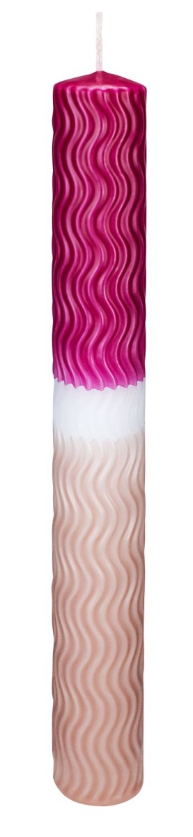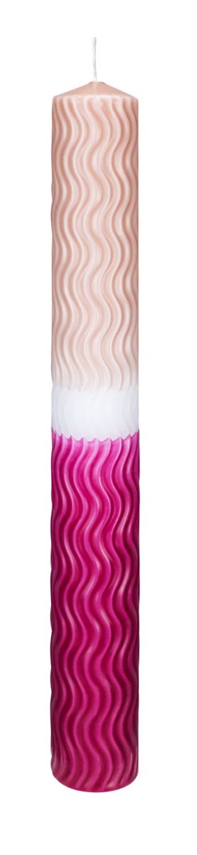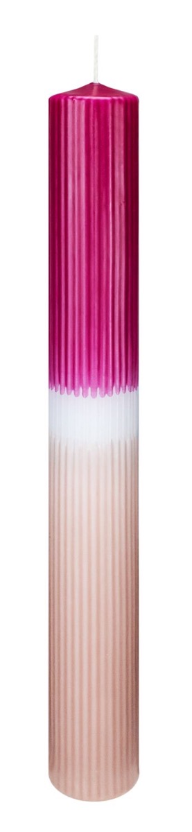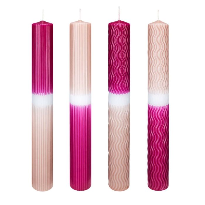 Dip dye dinner candles YOUNA with grooves, wavy lines, 4 pieces, nude-pink, 10"/25cm, Ø1.2"/3cm, 16h