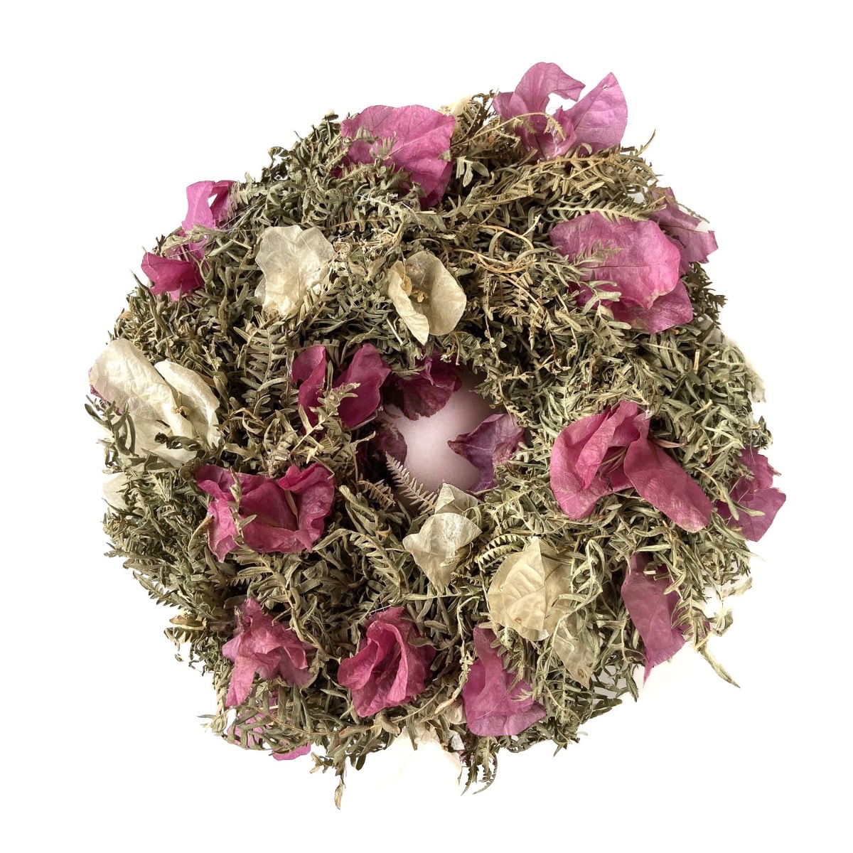Dried flower wreath MACARENA on straw wreath, bougainvillea, fuchsia-cream-nature, Ø10"/25cm