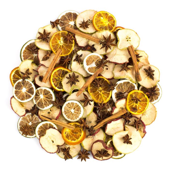 - The slices of dried fruit (orange, lime, various apples) have a diameter of approx. 4 - 6 cm