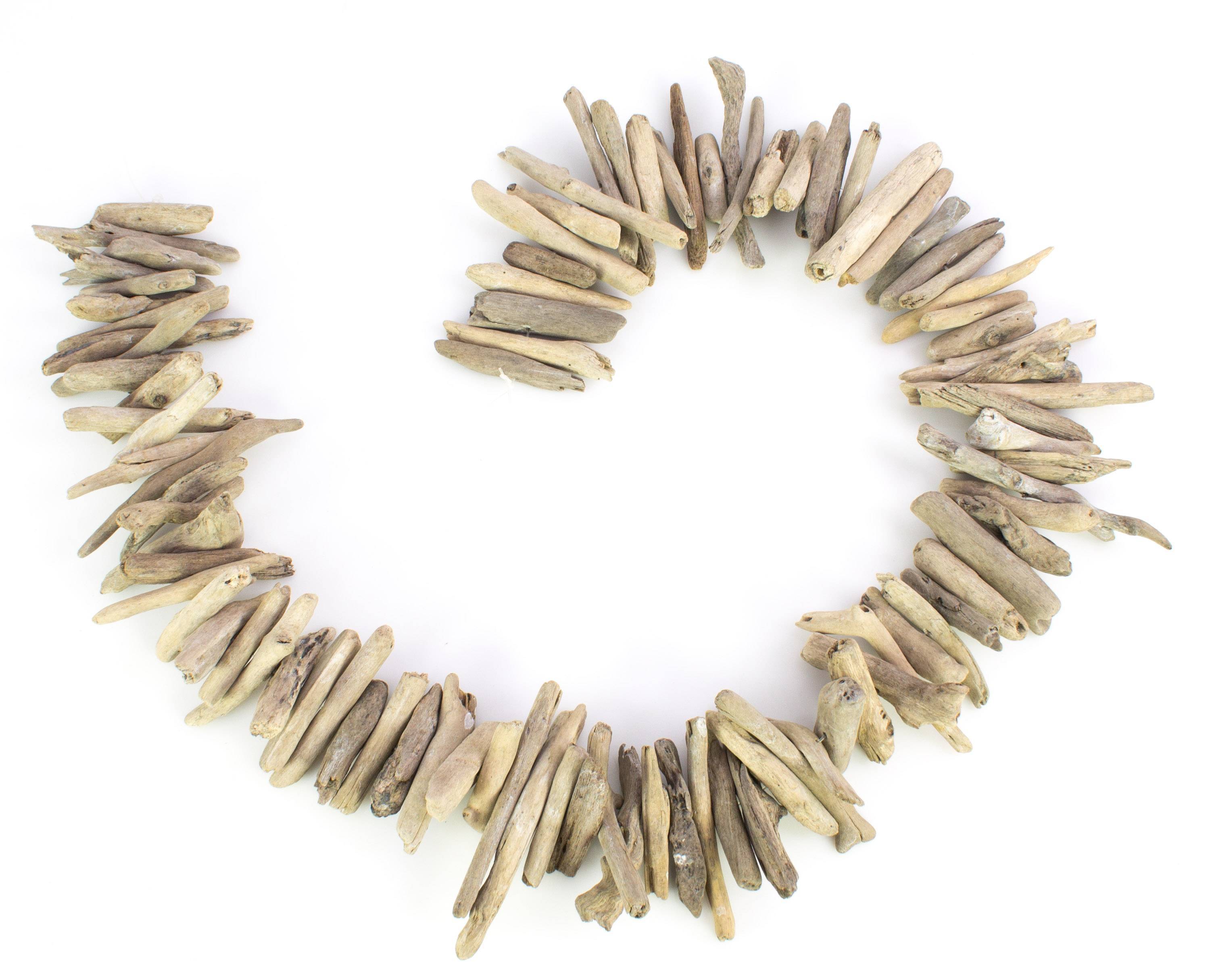 Dried driftwood pieces tied into a garland with a total length of approx. 105 cm. The wood is whitewashed, making it an unusual and modern decorative element.